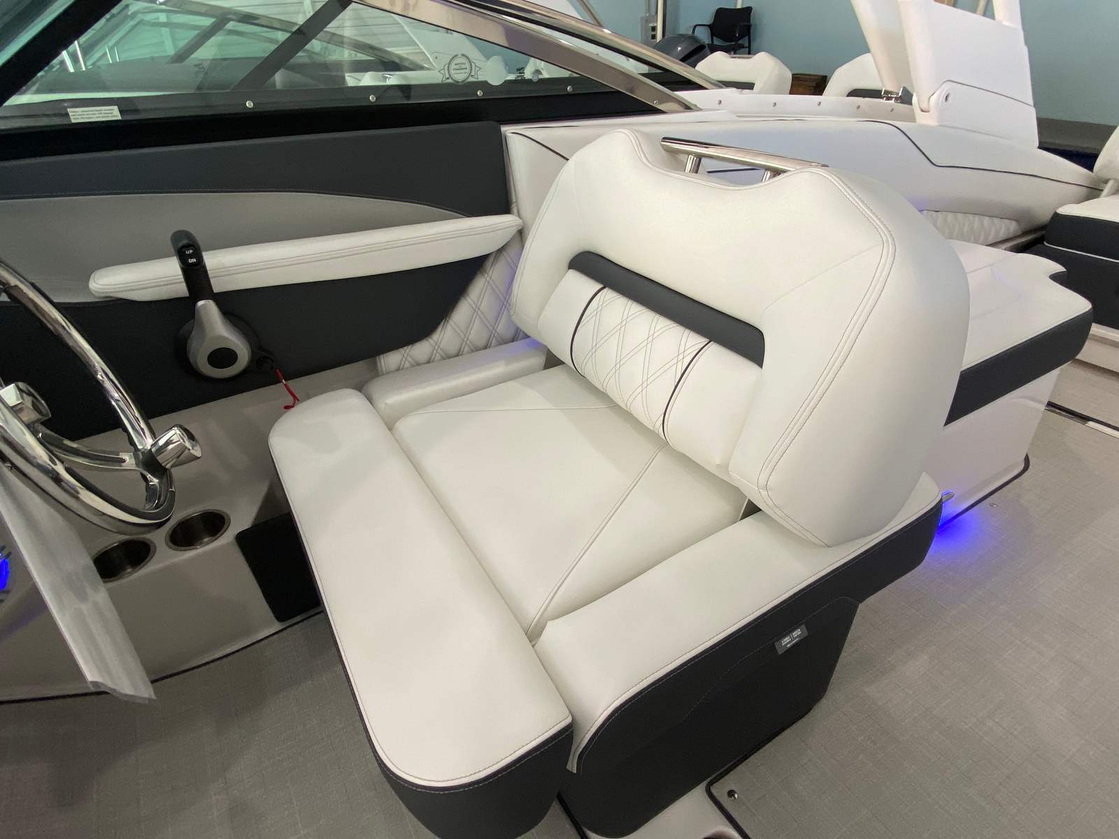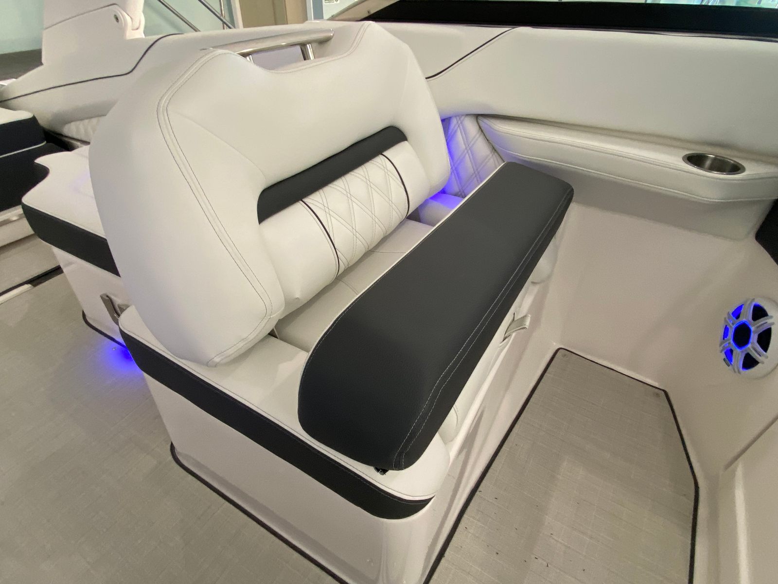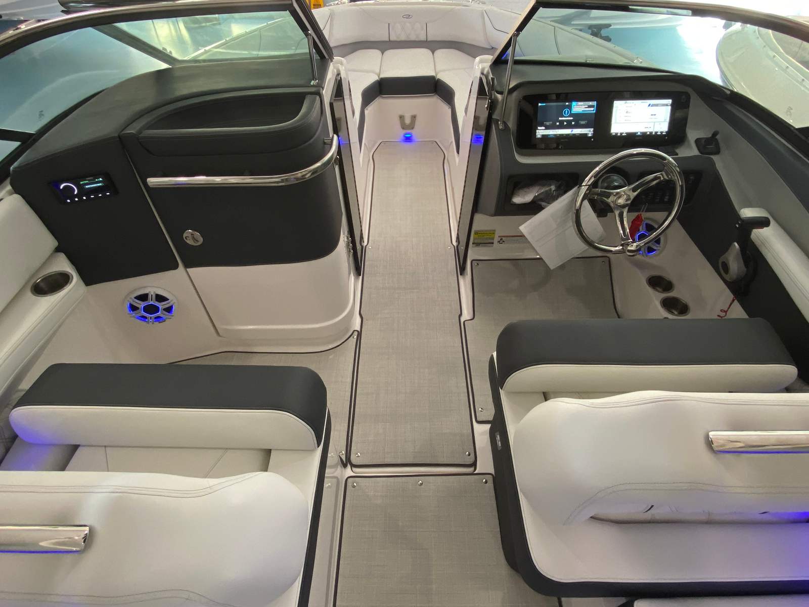 The Regal LX4 is packed with special features that set it apart from other Bowrider boats for sale. The bow thruster provides superior control, allowing you to navigate with confidence in crowded marinas or challenging conditions. Underwater lighting in vibrant blue adds a touch of elegance and creates a captivating ambiance for evening cruises. The port light—half moon design—brings natural light into the cabin, enhancing the overall atmosphere and comfort.A dedicated head compartment offers convenience for longer outings, ensuring that you and your guests can enjoy extended time on the water without sacrificing comfort. The dual battery switch with tray and cables ensures reliable power management, so you can focus on fun without worrying about electrical issues. The stainless steel upgrade package adds durability and a polished look to key hardware and fittings, while the Mediterranean Blue hull color turns heads wherever you go.Bow walk-thru doors make moving between the cockpit and bow safe and easy, while fender clips simplify docking and protect your investment. The cockpit seagrass mat provides a soft, stylish surface underfoot, enhancing both comfort and aesthetics.