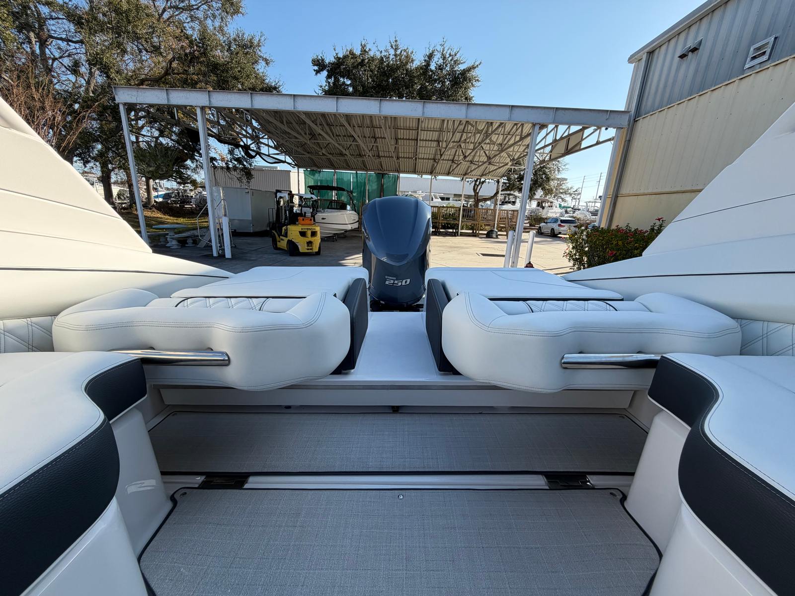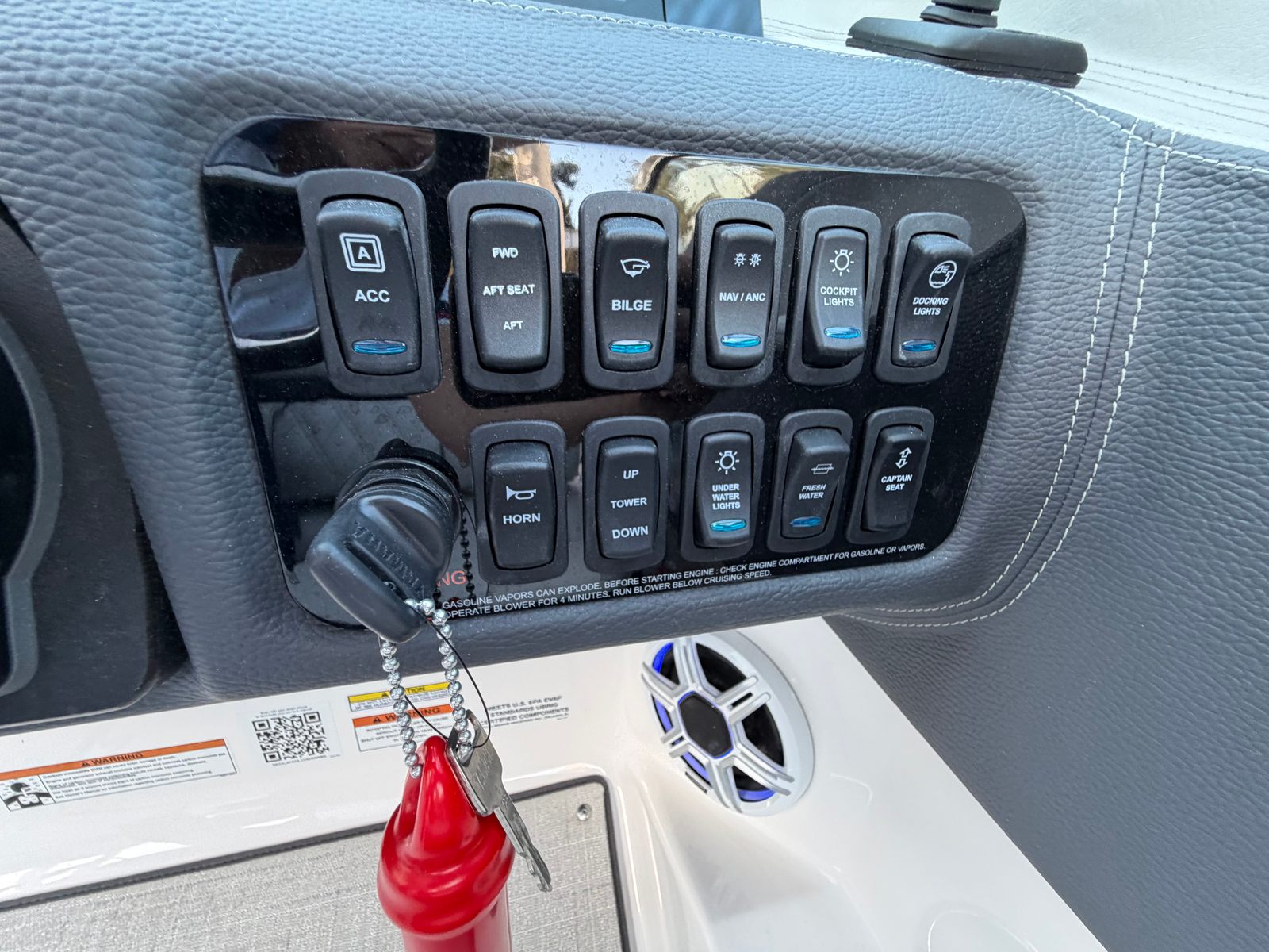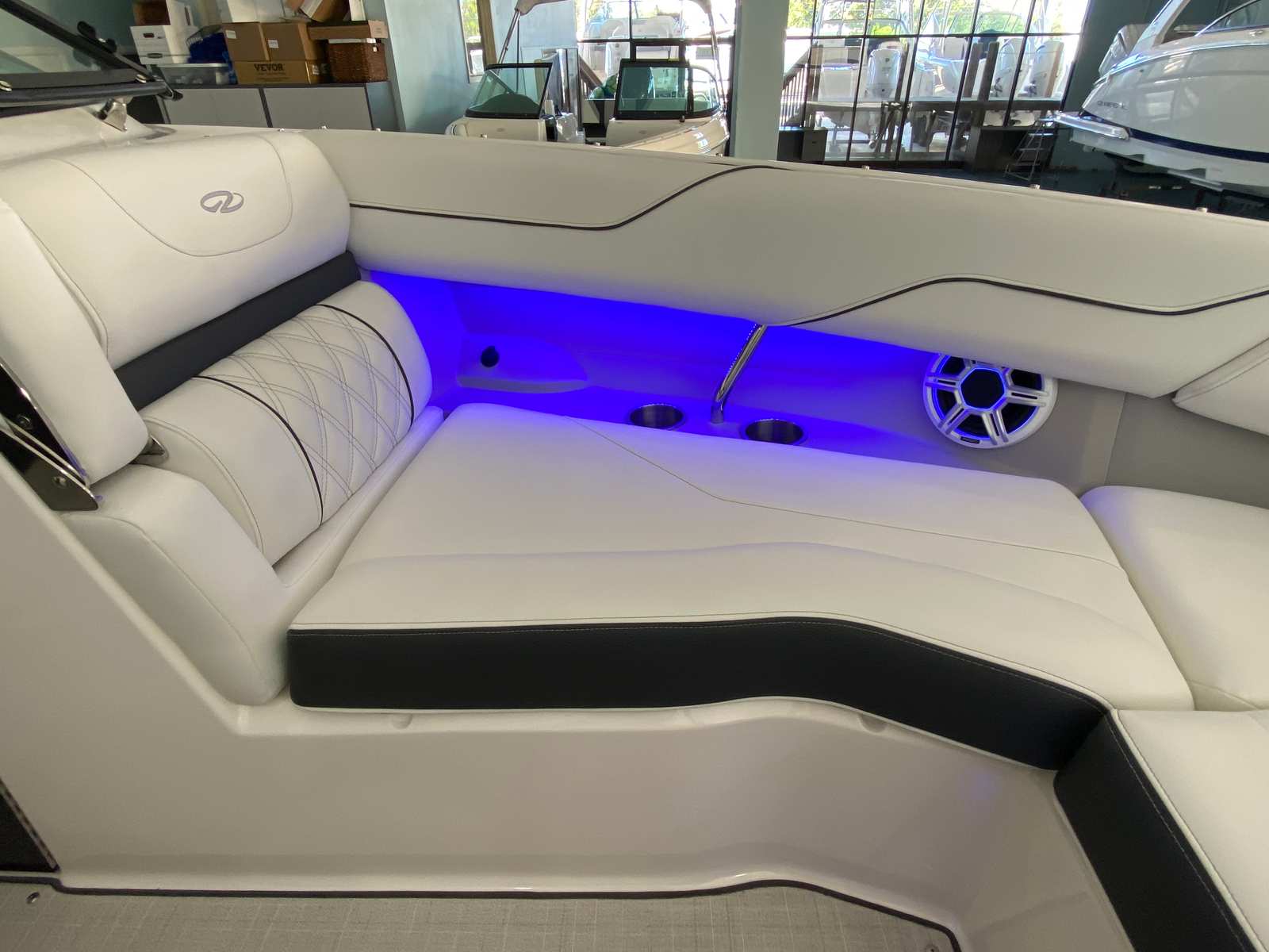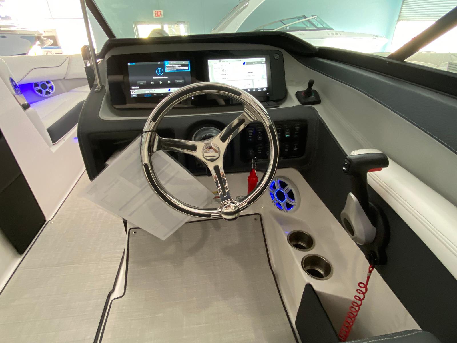 The Regal LX4 is packed with special features that set it apart from other Bowrider boats for sale. The bow thruster provides superior control, allowing you to navigate with confidence in crowded marinas or challenging conditions. Underwater lighting in vibrant blue adds a touch of elegance and creates a captivating ambiance for evening cruises. The port light—half moon design—brings natural light into the cabin, enhancing the overall atmosphere and comfort.A dedicated head compartment offers convenience for longer outings, ensuring that you and your guests can enjoy extended time on the water without sacrificing comfort. The dual battery switch with tray and cables ensures reliable power management, so you can focus on fun without worrying about electrical issues. The stainless steel upgrade package adds durability and a polished look to key hardware and fittings, while the Mediterranean Blue hull color turns heads wherever you go.Bow walk-thru doors make moving between the cockpit and bow safe and easy, while fender clips simplify docking and protect your investment. The cockpit seagrass mat provides a soft, stylish surface underfoot, enhancing both comfort and aesthetics.