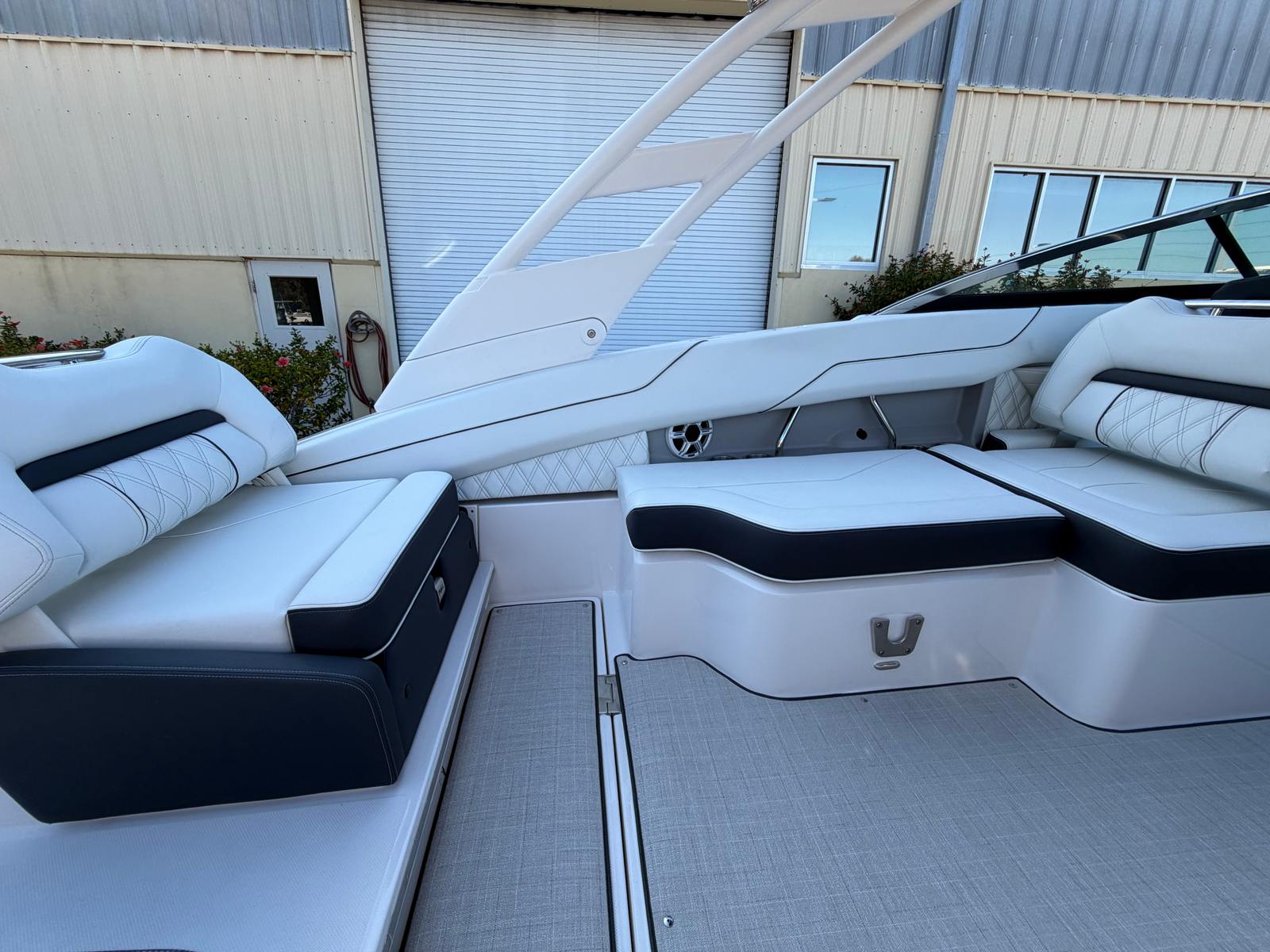 The Regal LX4 is designed for versatility and ease of ownership. Its manageable length makes storage straightforward, whether you’re keeping it at a marina or trailering it to your favorite launch site. The bow thruster and fender clips streamline docking, so you can spend less time maneuvering and more time enjoying the water. The dual battery switch ensures reliable power for electronics and accessories, while the cockpit seagrass mat provides a comfortable, easy-to-clean surface for all your activities.Fuel efficiency and responsive handling make the LX4 a practical choice for both short trips and longer adventures. The head compartment adds convenience for families and groups, while the port light brings a bright, welcoming feel to the interior. Every feature is designed to make boating easier, more enjoyable, and more accessible for everyone on board.