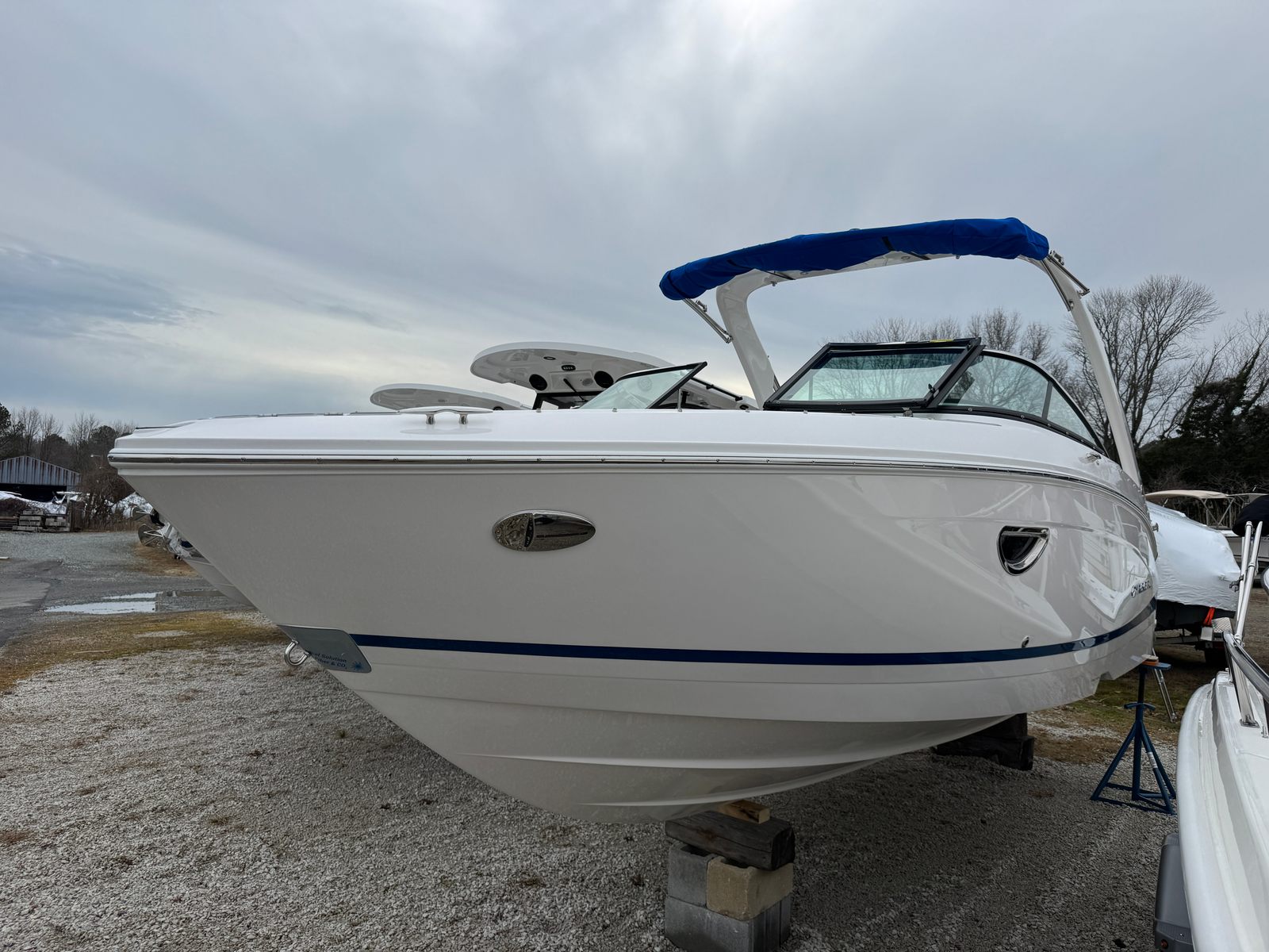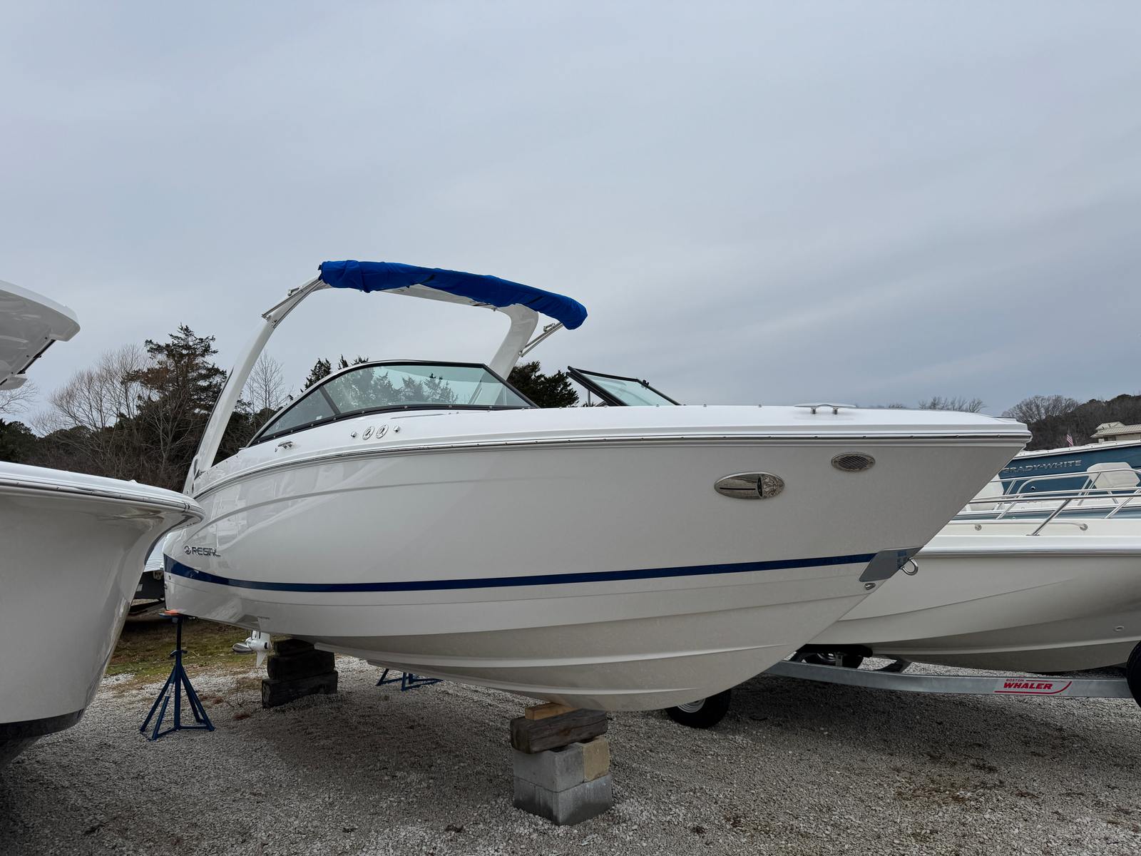 Hull Color: Tahiti Beach White with Newport Blue Boot Stripe and Matching Bottom