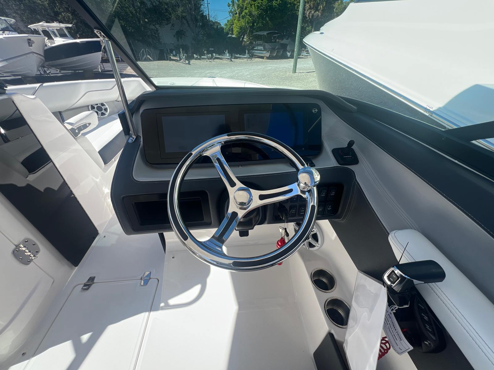 The 2026 Regal LX4 is loaded with features that enhance both comfort and convenience. The striking Tahiti Beach White hull and bottom, paired with the Steel Gray boot stripe, create a visually stunning profile that turns heads wherever you go. The Titanium interior is both stylish and durable, providing a welcoming space for relaxation and socializing. Bow and cockpit covers, along with black canvas accents, offer protection from the elements and help keep your boat looking pristine.Step into the cockpit and you’ll appreciate the plush Seagrass mat, which adds a layer of comfort underfoot and is easy to maintain. The dual battery switch with tray and cables ensures reliable power management, while the battery charger keeps you ready for every adventure. Every detail of the LX4 is thoughtfully designed to maximize your enjoyment on the water, from the spacious seating arrangements to the intuitive controls at the helm.