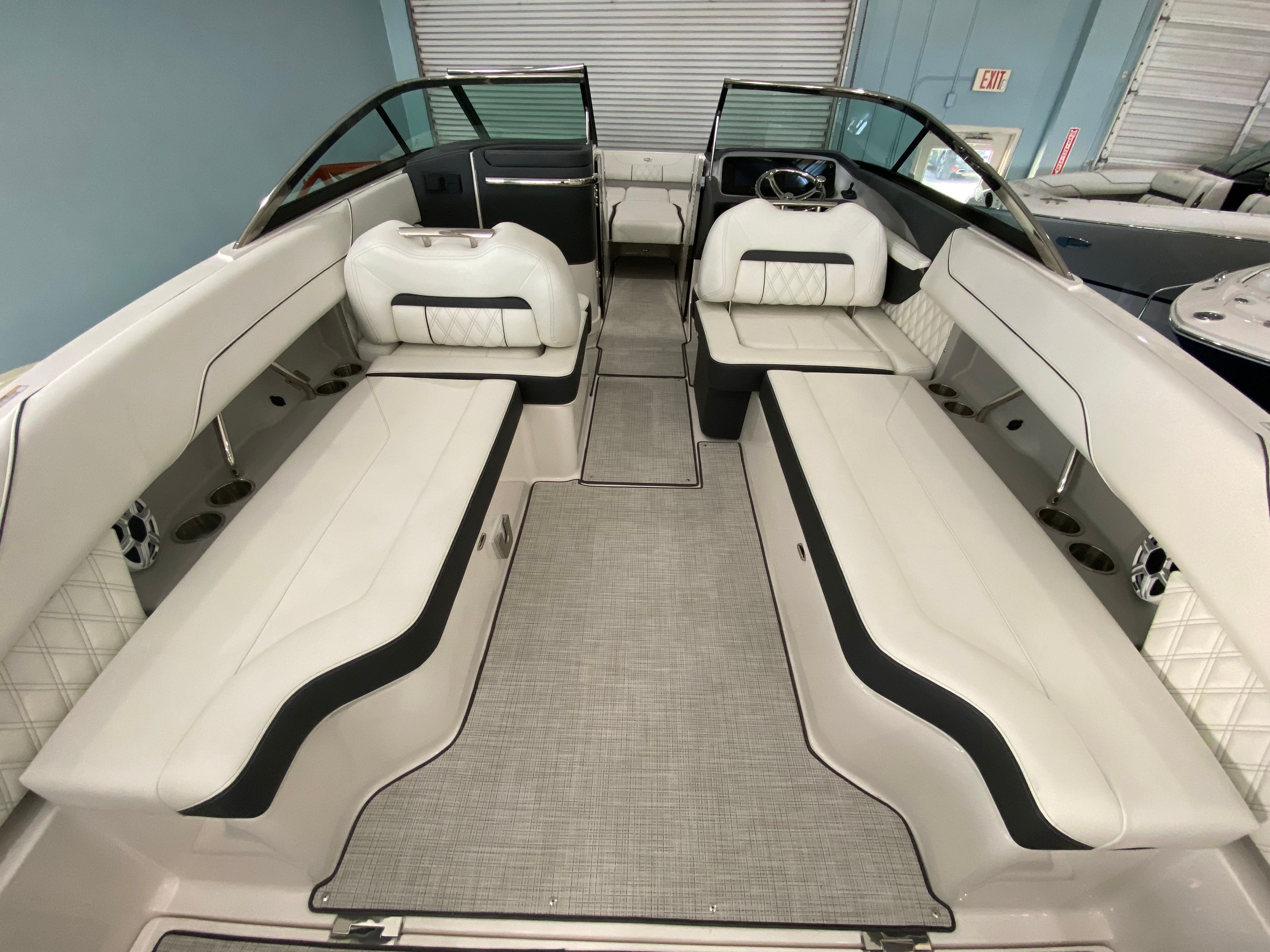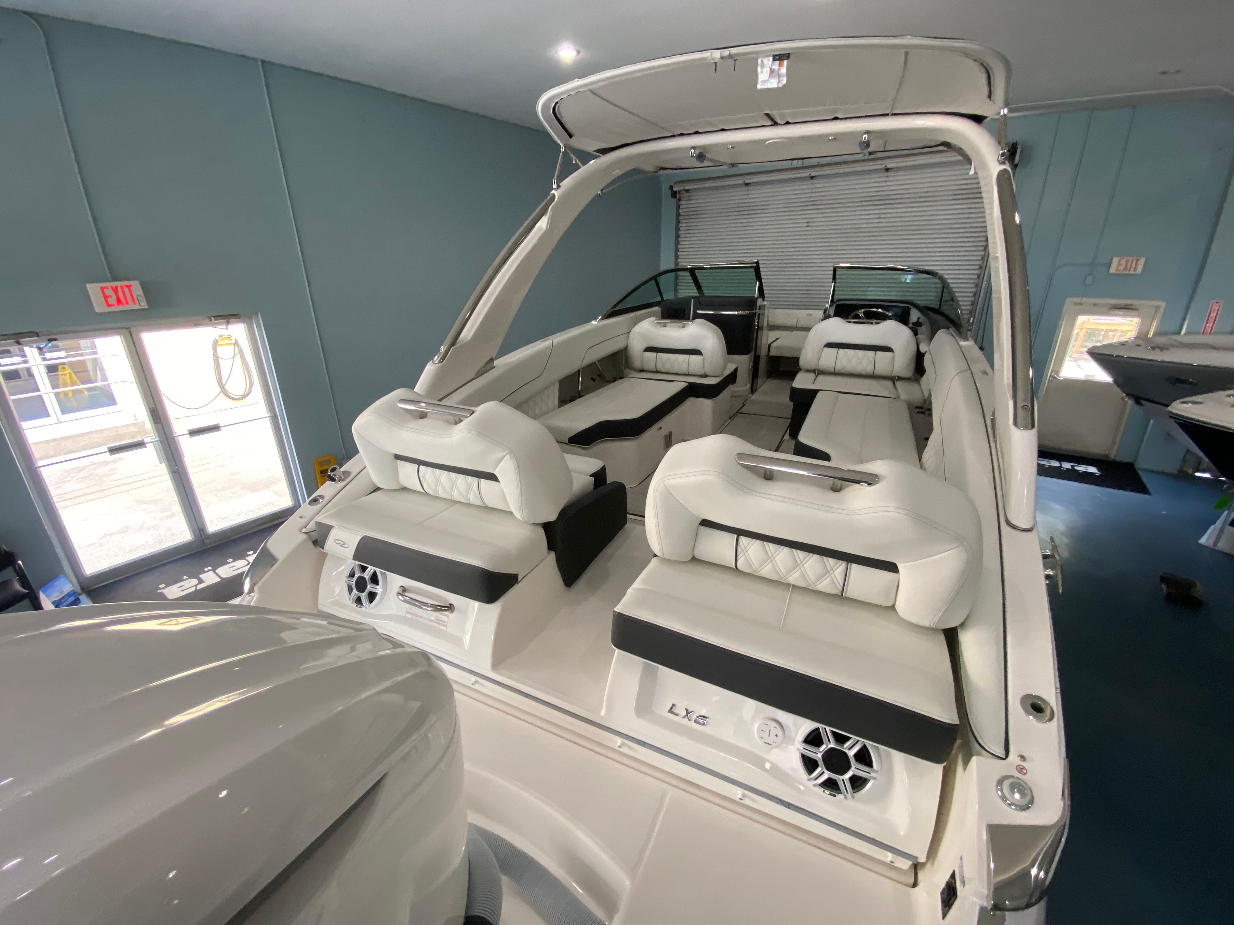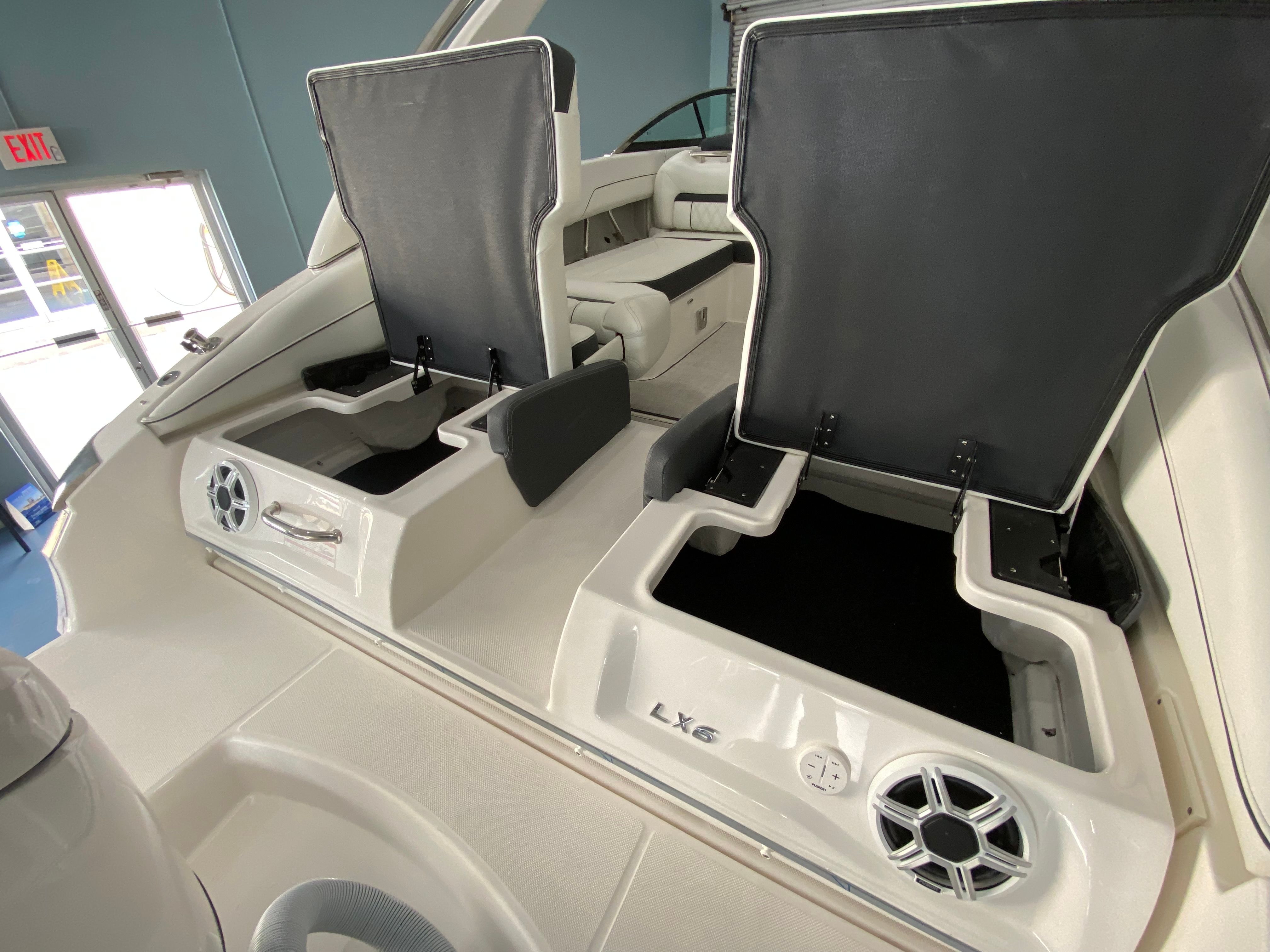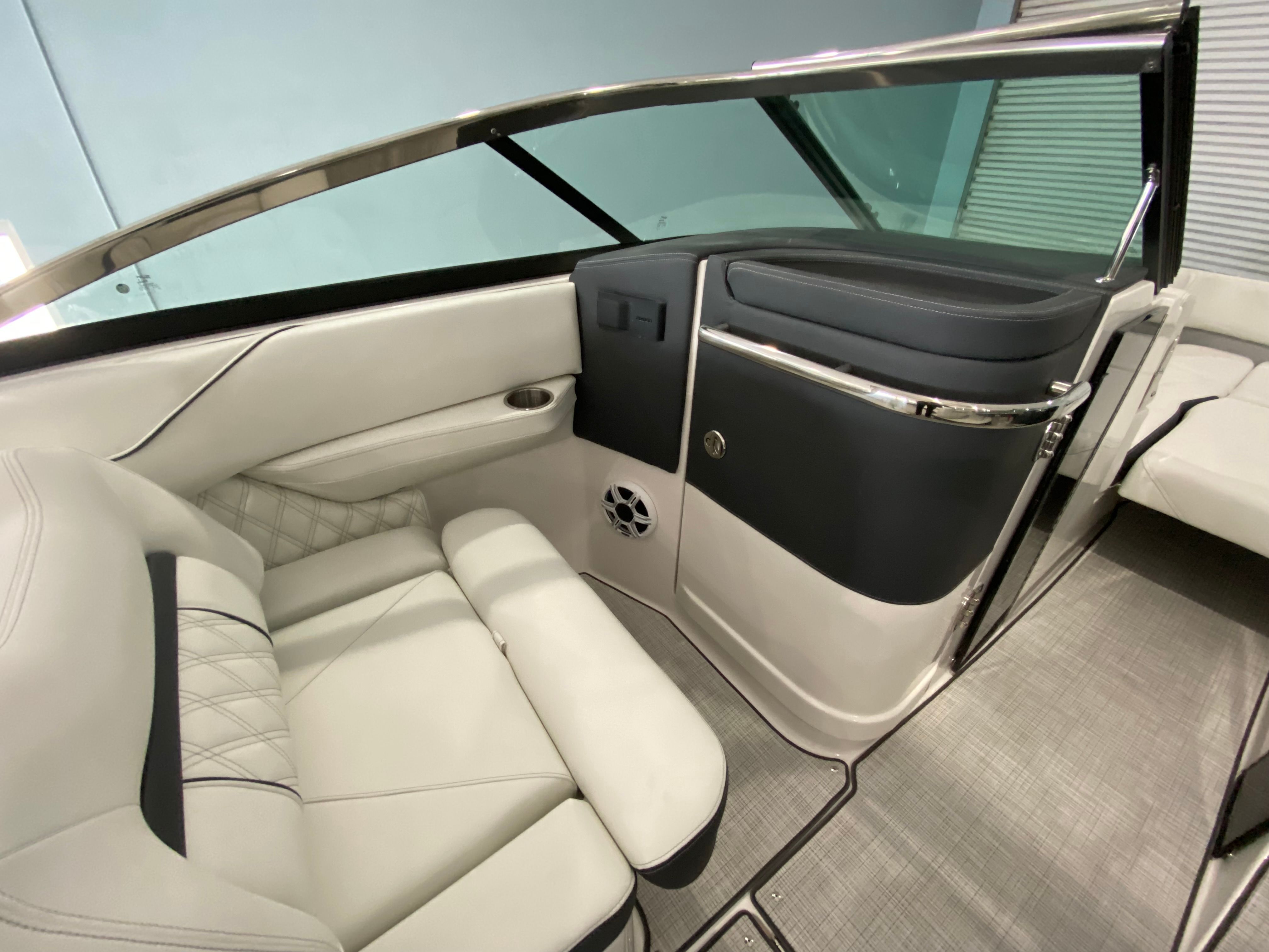 The 2026 Regal LX6 Bowrider is equipped with a range of special features designed to enhance your time on the water. The Titanium interior provides a sophisticated and comfortable environment, while the Bow & Cockpit Covers and Steel Grey canvas offer protection from the elements and keep your boat looking pristine. The Cockpit Seagrass Mat adds a touch of elegance and comfort underfoot, making every moment onboard enjoyable. The dual battery switch with tray and cables, along with the battery charger, ensures reliable power management for all your onboard electronics and accessories.The thoughtful color palette, including the Steel Grey hull, Mediterranean Blue bootstripe, and Tahiti Beach White bottom, gives the LX6 a distinctive and modern look that stands out at the marina or on open water. Every detail is crafted to provide both aesthetic appeal and functional benefits, making this Bowrider boat for sale a true head-turner.