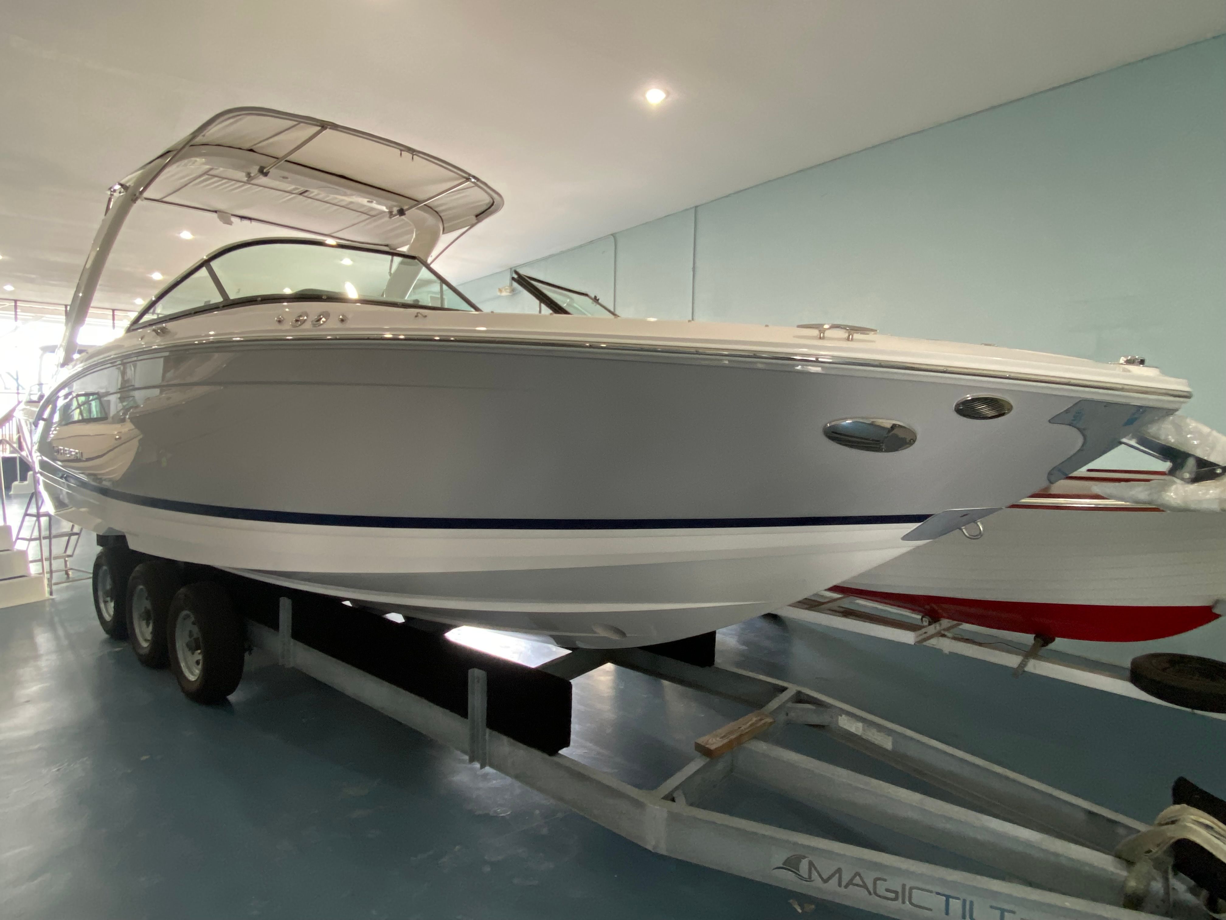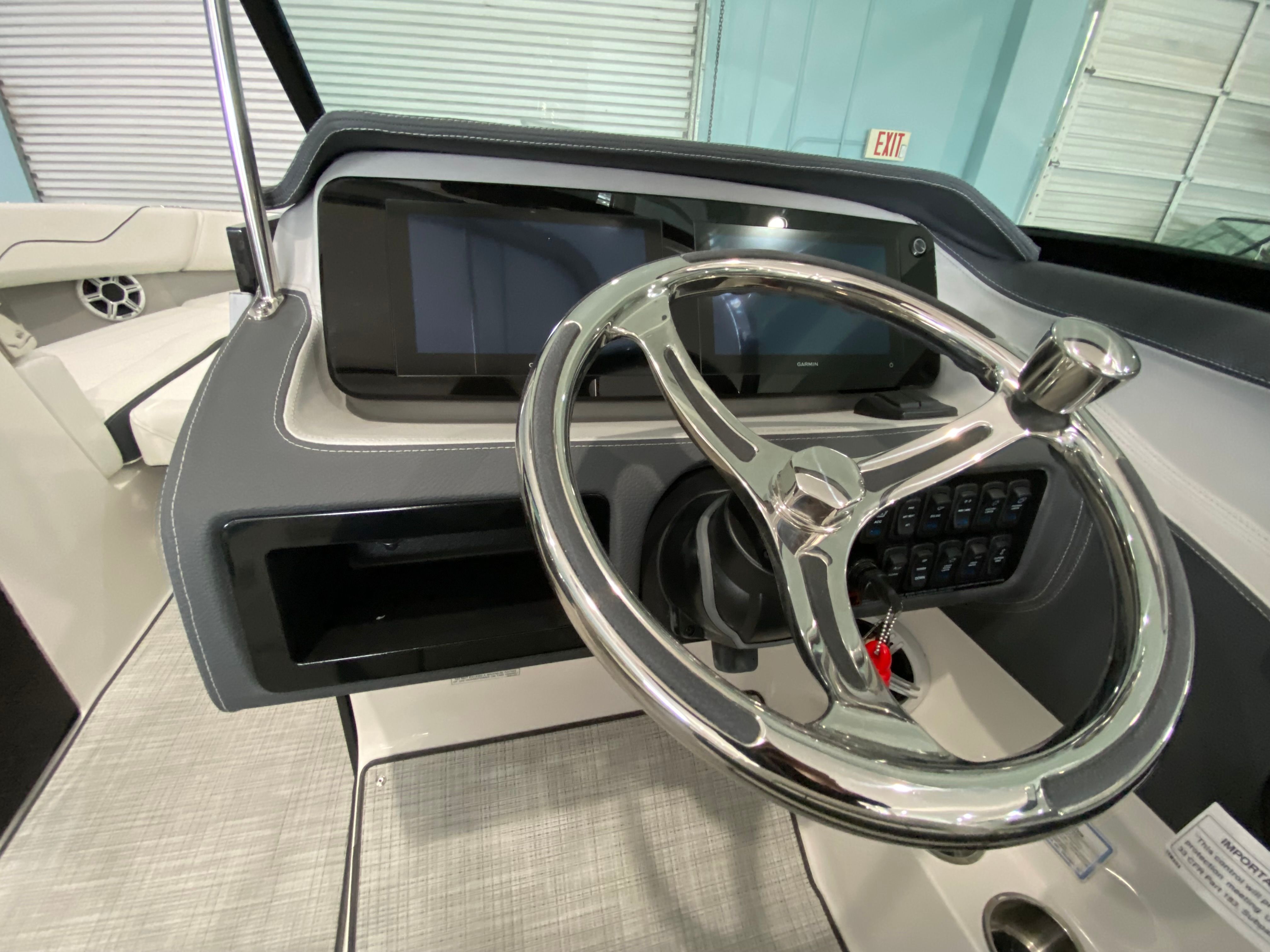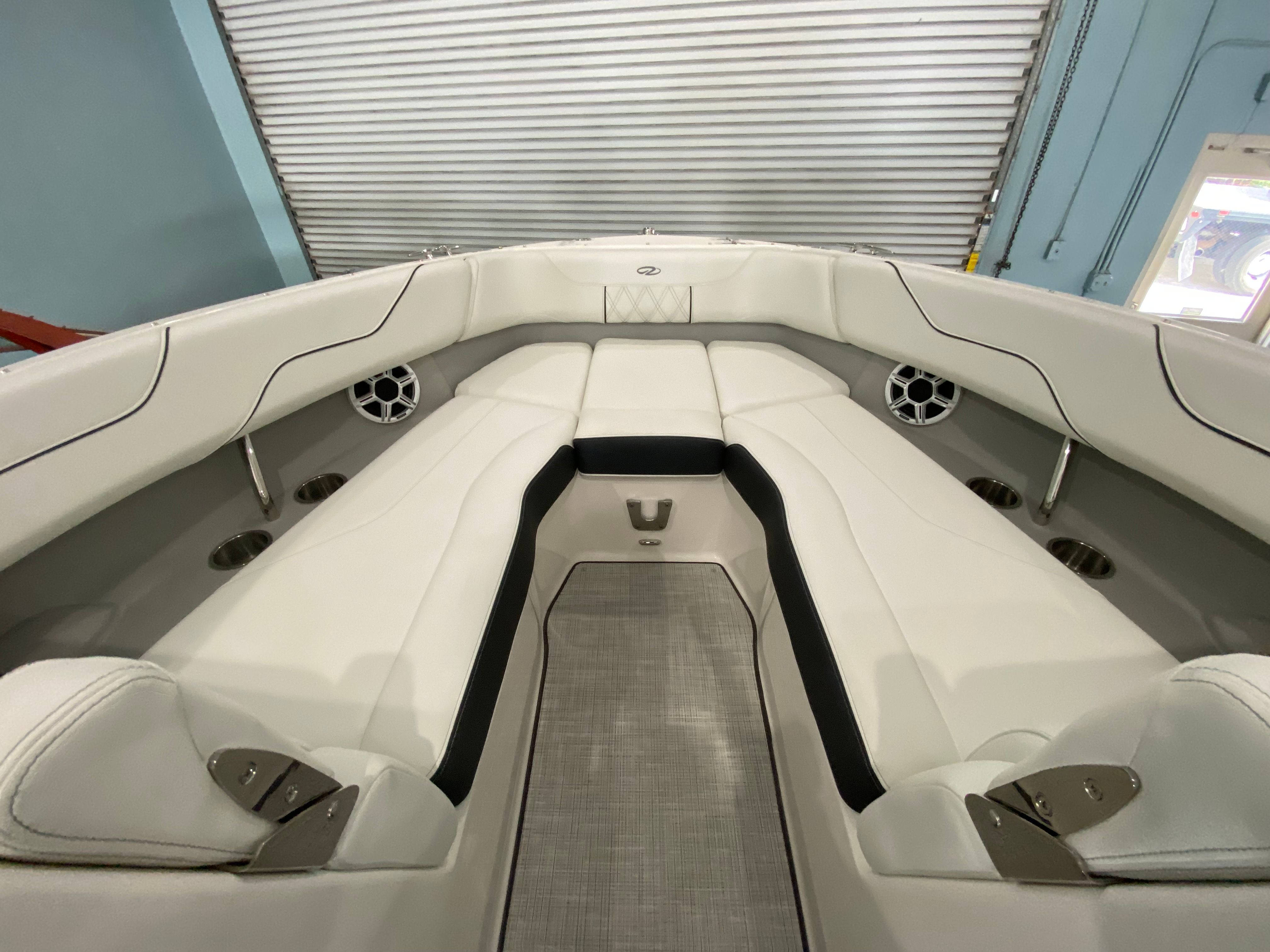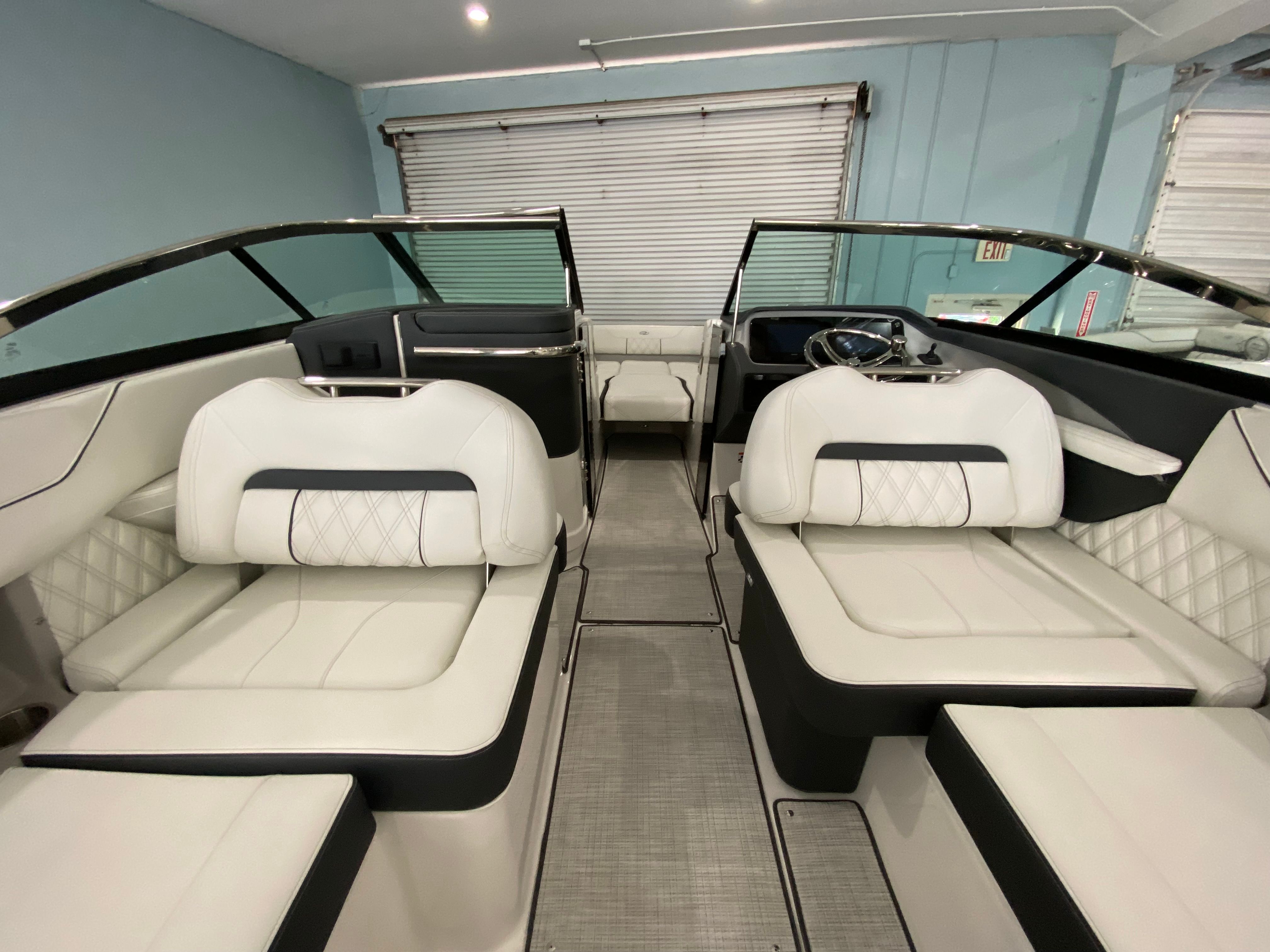 The 2026 Regal LX6 Bowrider is equipped with a range of special features designed to enhance your time on the water. The Titanium interior provides a sophisticated and comfortable environment, while the Bow & Cockpit Covers and Steel Grey canvas offer protection from the elements and keep your boat looking pristine. The Cockpit Seagrass Mat adds a touch of elegance and comfort underfoot, making every moment onboard enjoyable. The dual battery switch with tray and cables, along with the battery charger, ensures reliable power management for all your onboard electronics and accessories.The thoughtful color palette, including the Steel Grey hull, Mediterranean Blue bootstripe, and Tahiti Beach White bottom, gives the LX6 a distinctive and modern look that stands out at the marina or on open water. Every detail is crafted to provide both aesthetic appeal and functional benefits, making this Bowrider boat for sale a true head-turner.