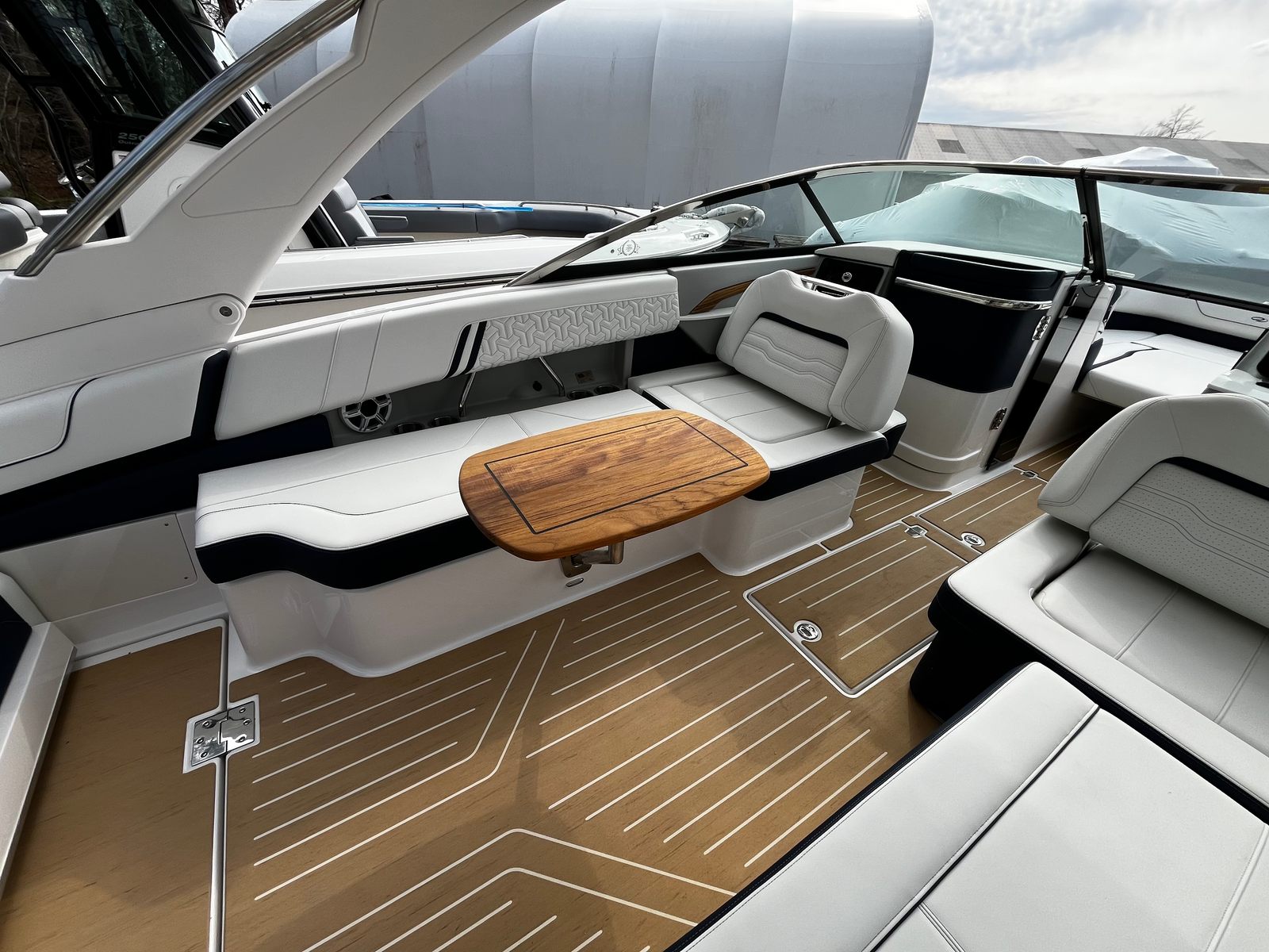 Synthetic Teak Flooring (Cockpit & Swim Platform): Durable, stylish, and easy to maintain.