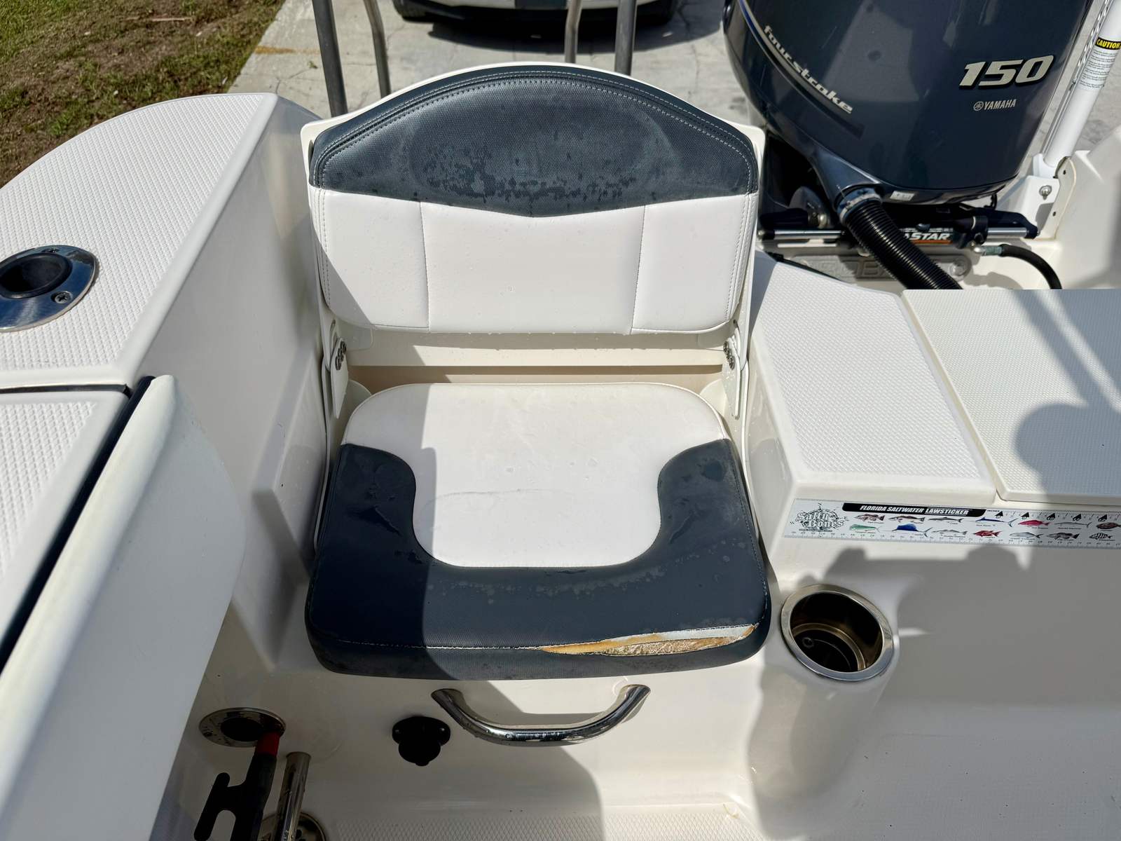 Powered by a single 150-horsepower engine with just 150 hours of use, the Robalo R200 delivers a smooth and responsive ride. The engine’s reliable performance ensures you have the power needed to get to your favorite fishing spots quickly or enjoy a day of water sports with ease. The center console design enhances visibility and maneuverability, making docking and navigating tight waterways a breeze. Whether you’re cruising at a leisurely pace or pushing the throttle for a bit more excitement, this Robalo boat for sale offers a balanced blend of speed, efficiency, and control.