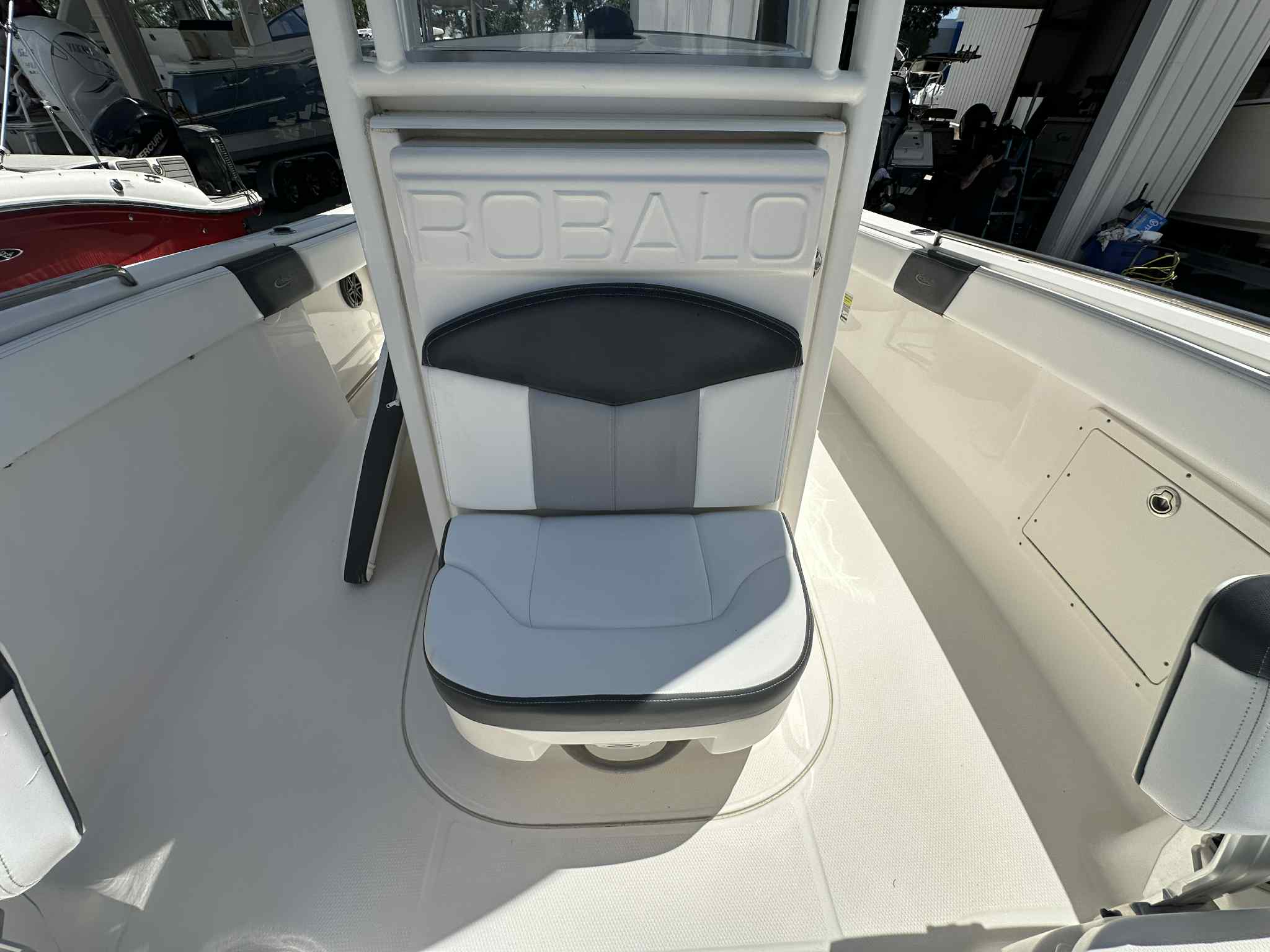 Practicality is at the heart of the Robalo R242 CC. The boat’s ample storage compartments make it easy to stow away gear, coolers, and personal items, keeping the deck clutter-free and organized. Its manageable 24-foot length makes docking and maneuvering a breeze, even for those new to boating. The efficient engine design helps maximize fuel economy, allowing you to spend more time on the water and less time refueling.The Center Console layout is ideal for anglers, providing 360-degree access for casting and reeling in your catch. The boat’s sturdy construction and reliable performance make it a dependable choice for long days on the water, while its stylish design ensures you’ll turn heads at the marina or boat ramp. Whether you’re heading out for a quick fishing trip or planning a full day of exploration, the Robalo R242 CC adapts to your needs with ease.
