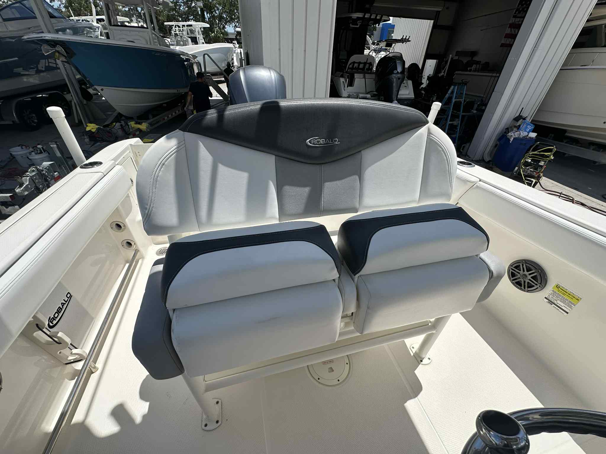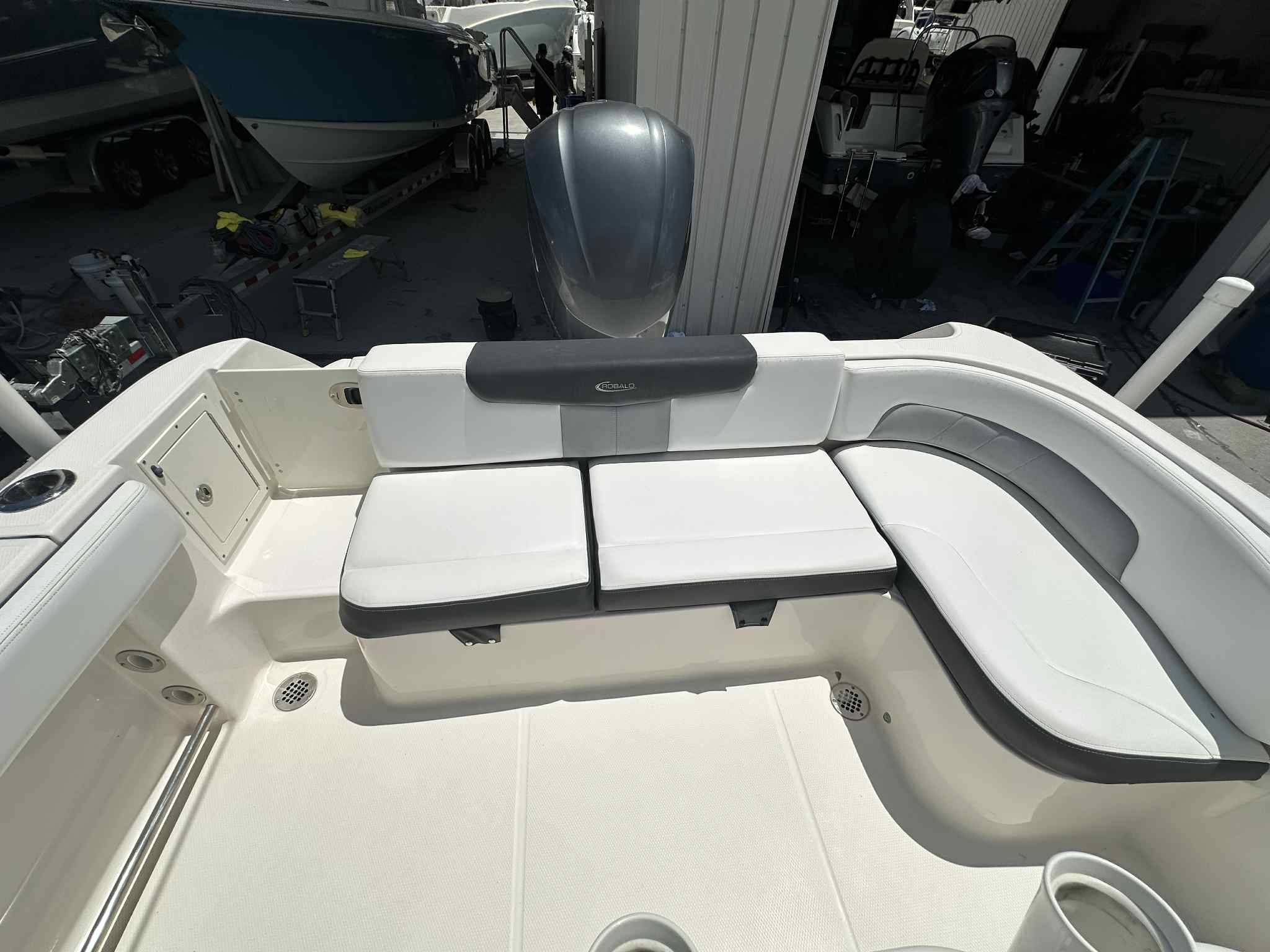 The Robalo R242 CC is packed with features that enhance both functionality and comfort. Its Center Console layout provides unobstructed access around the deck, making it perfect for fishing, entertaining, or simply relaxing. The spacious design allows for easy movement, while the ergonomic helm ensures that all controls are within reach for the captain. The boat’s 24-foot length offers ample space for guests, gear, and recreational equipment, making it a versatile choice for a variety of activities.Special features of the Robalo R242 CC include a well-designed console with intuitive controls, a comfortable seating arrangement, and plenty of storage options for tackle, safety gear, and personal items. The boat’s sturdy construction and high-quality materials ensure durability in all conditions, while the sleek exterior adds a touch of sophistication to your boating experience.