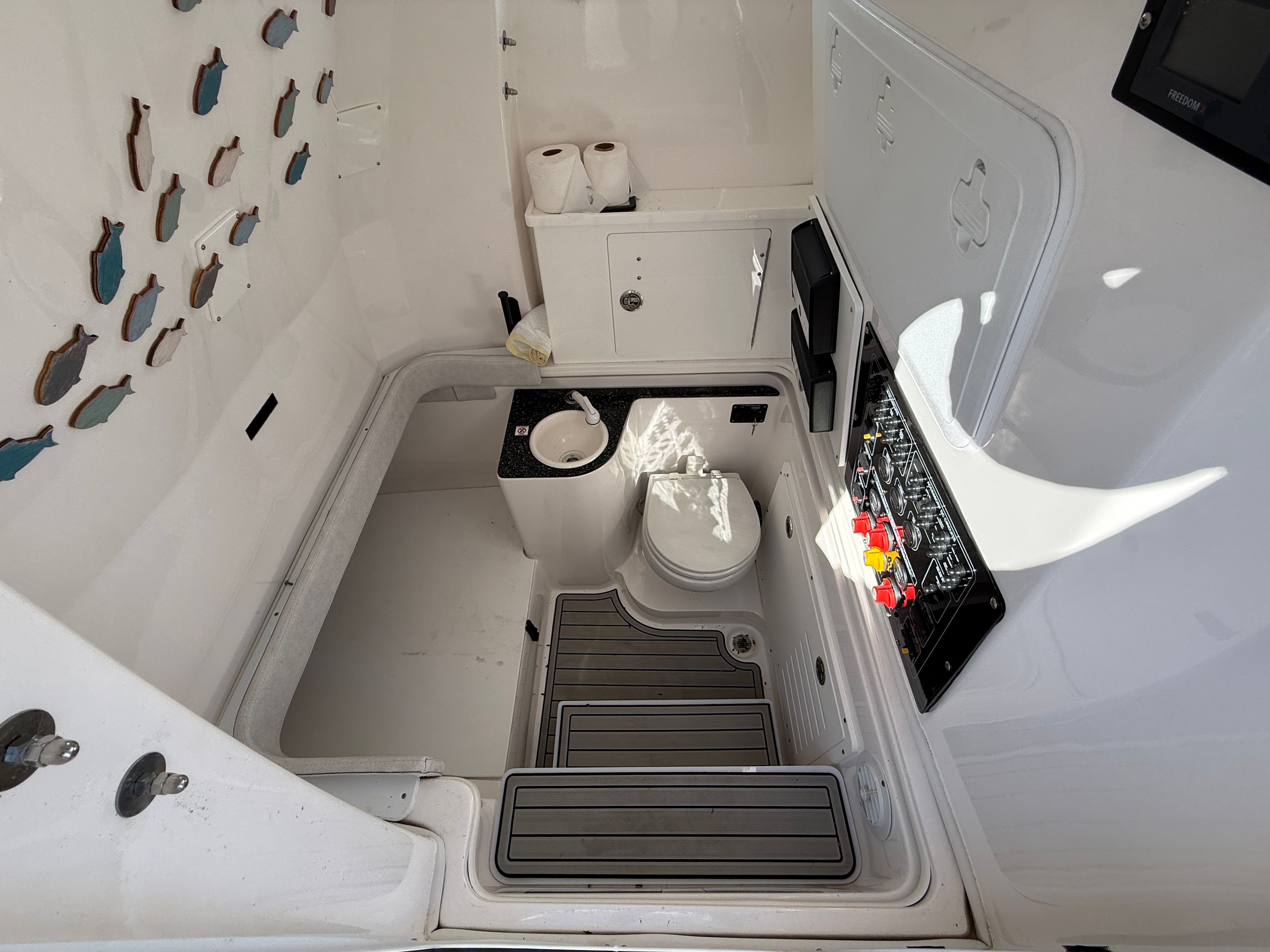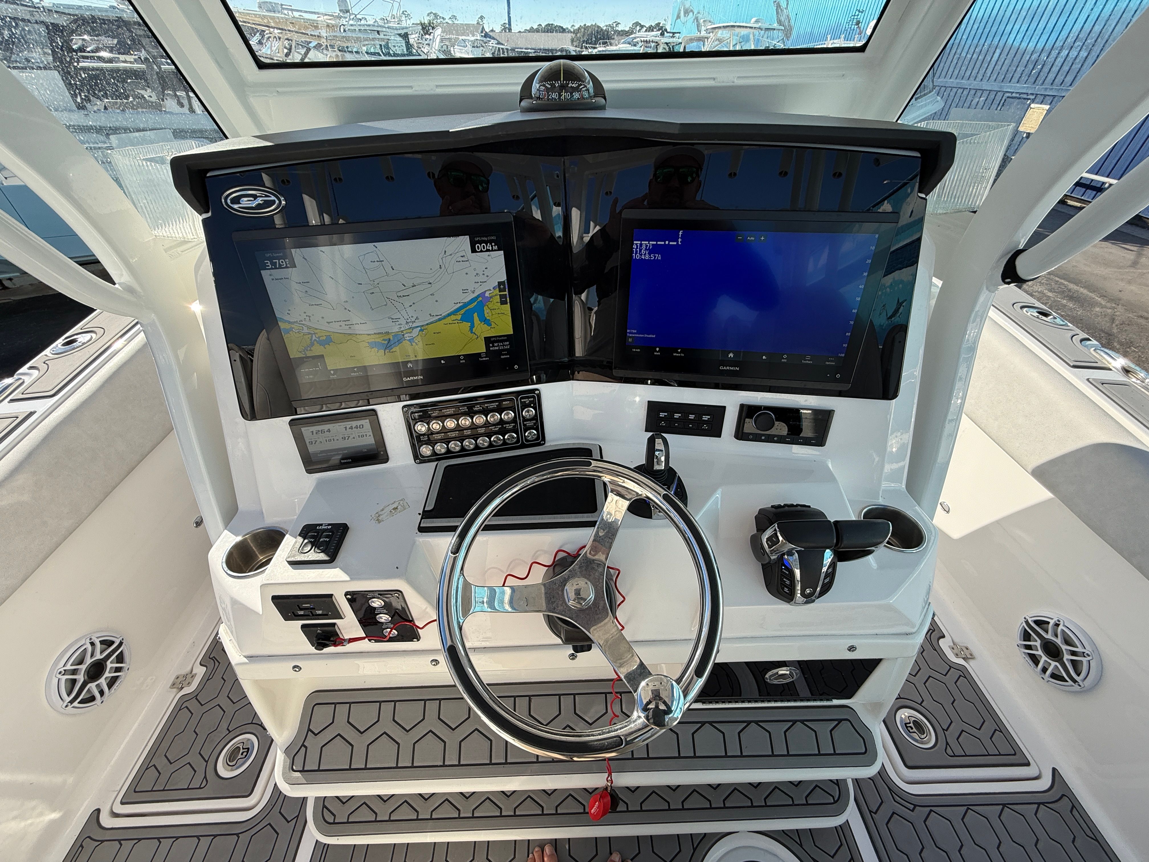 Practicality is at the heart of the Sea Fox 328 Commander’s design. The ample deck space makes it easy to store gear, coolers, and other essentials, while the thoughtful layout ensures that everything you need is always within reach. Docking is a breeze thanks to the responsive handling and manageable size, making it simple to navigate marinas or pull up to your favorite waterfront restaurant. The efficient twin-engine setup not only delivers impressive speed but also helps optimize fuel consumption, allowing you to spend more time enjoying the water and less time refueling. Whether you are planning a weekend getaway or a quick afternoon escape, this Sea Fox boat for sale is ready to accommodate your every need.