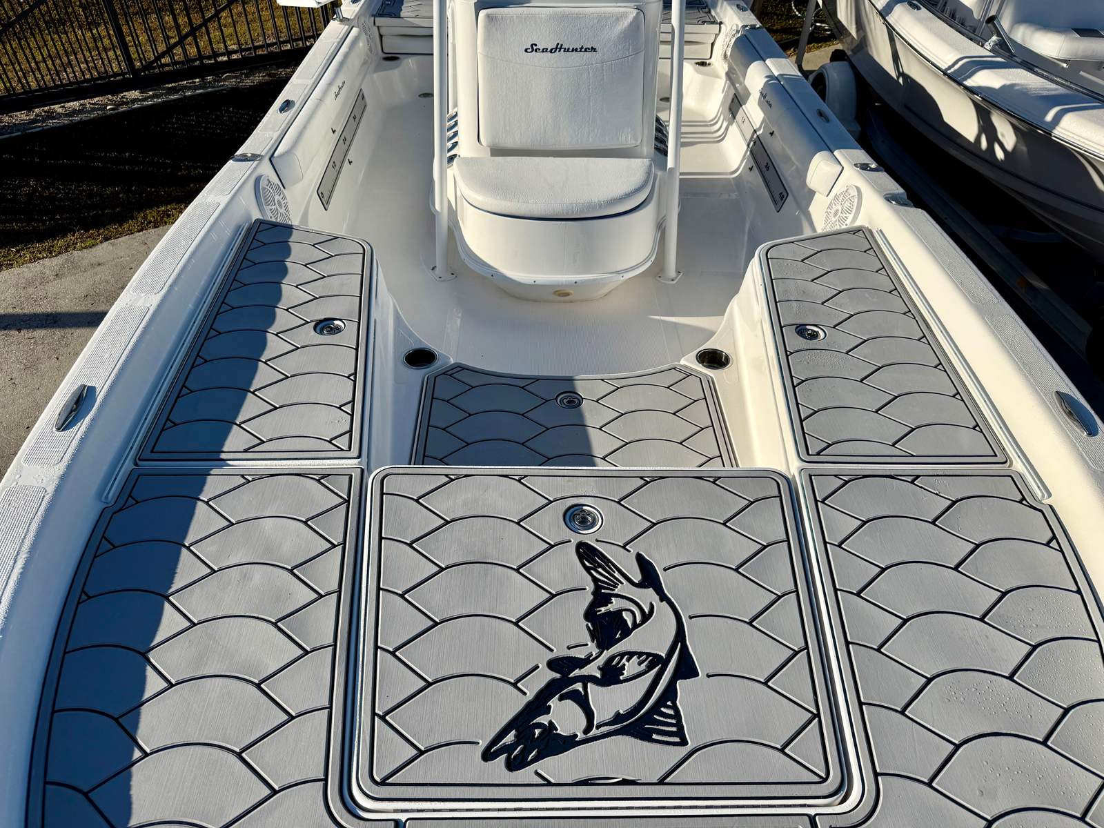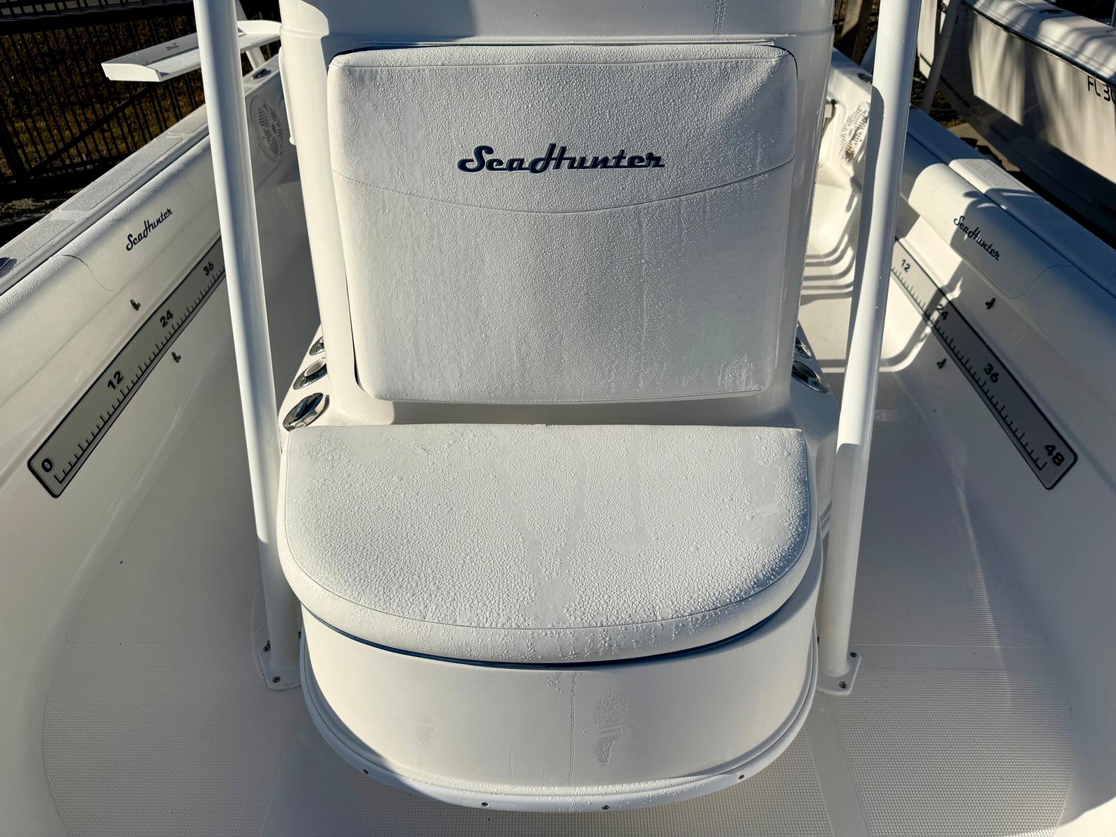 Entertainment and convenience are equally prioritized with a Fusion stereo system paired with bow-to-stern speakers, creating the perfect soundtrack for cruising or relaxing at the sandbar. Anglers will appreciate the onboard livewell, abundant deck space, and Power-Pole shallow water anchor, making positioning and fishing easier than ever. Designed with versatility in mind, the Sea Hunter 24 Bay transitions seamlessly from serious fishing platform to family-friendly cruiser.