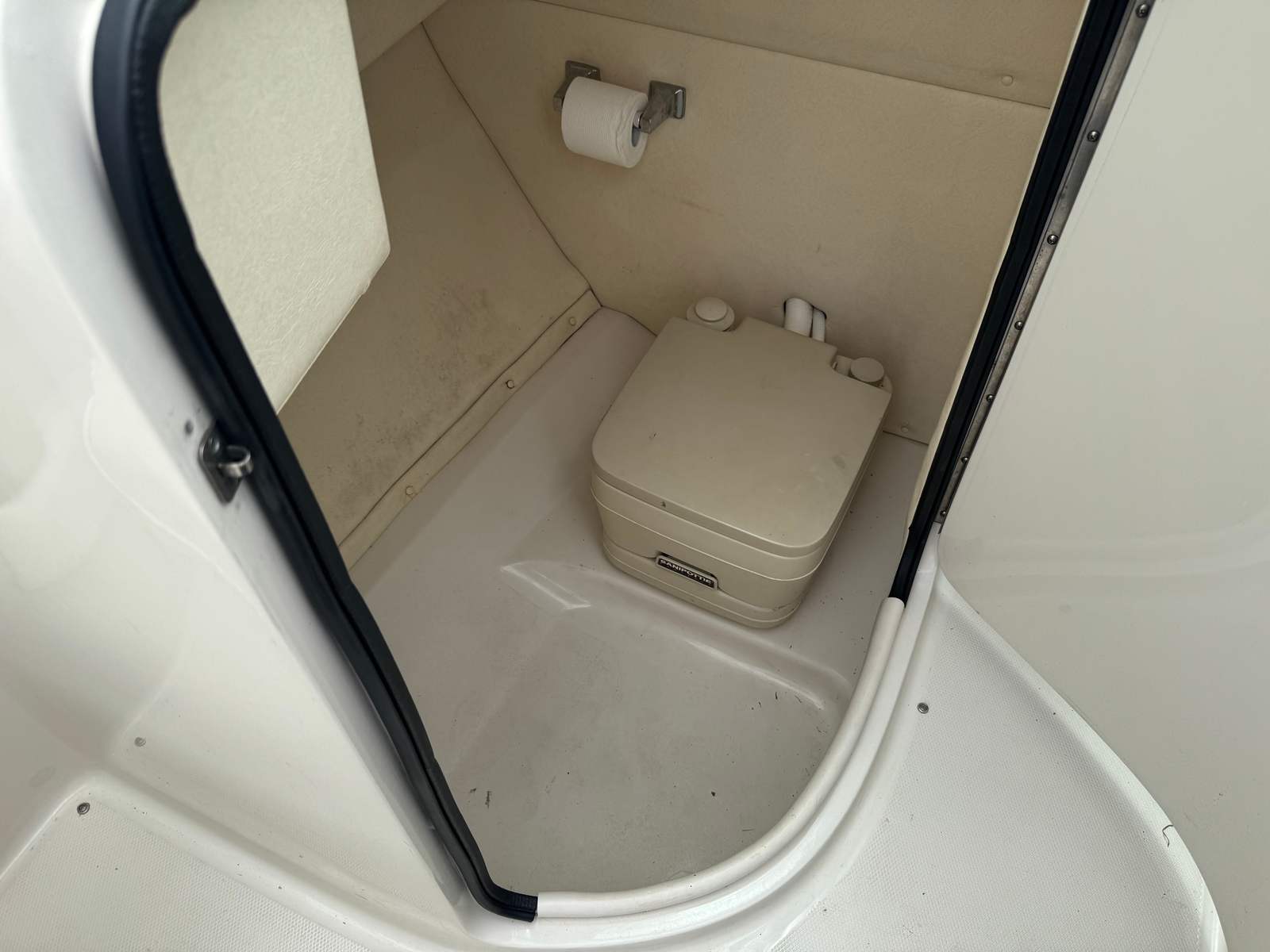 The 220 Sundeck makes room for 10 riders to stretch out in the lounge seating. The bow seating has its own boarding ladder and shower, and room for the table to set up when needed. The cockpit has L-shaped seating as well as a bolstered Captain's chair. Access to the head is in the privacy compartment in front of the passenger seat.