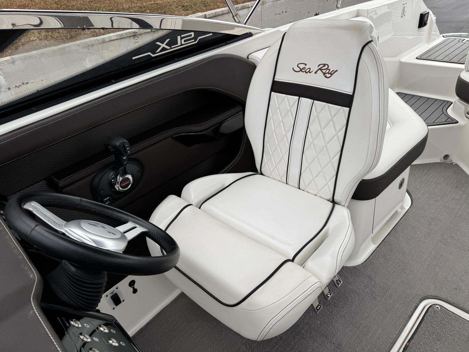 This Sea Ray SLX 230 is loaded with features that enhance both comfort and functionality. The bowrider layout provides spacious seating in the bow and cockpit areas, allowing guests to stretch out and enjoy the ride. The ergonomic helm is designed for ease of use, giving the captain full control and excellent visibility. Premium upholstery and high-quality materials throughout the boat create an inviting atmosphere, while the thoughtful design ensures that every inch of space is utilized efficiently.The SLX 230’s hull design contributes to a smooth, dry ride, even in choppy conditions. The integrated swim platform makes it easy to access the water for swimming or water sports, while the deep bow seating area is perfect for lounging and socializing. Storage compartments are strategically placed to keep gear organized and out of the way, so you can focus on having fun. The overall fit and finish of this Sea Ray boat for sale reflect the brand’s commitment to excellence and attention to detail.