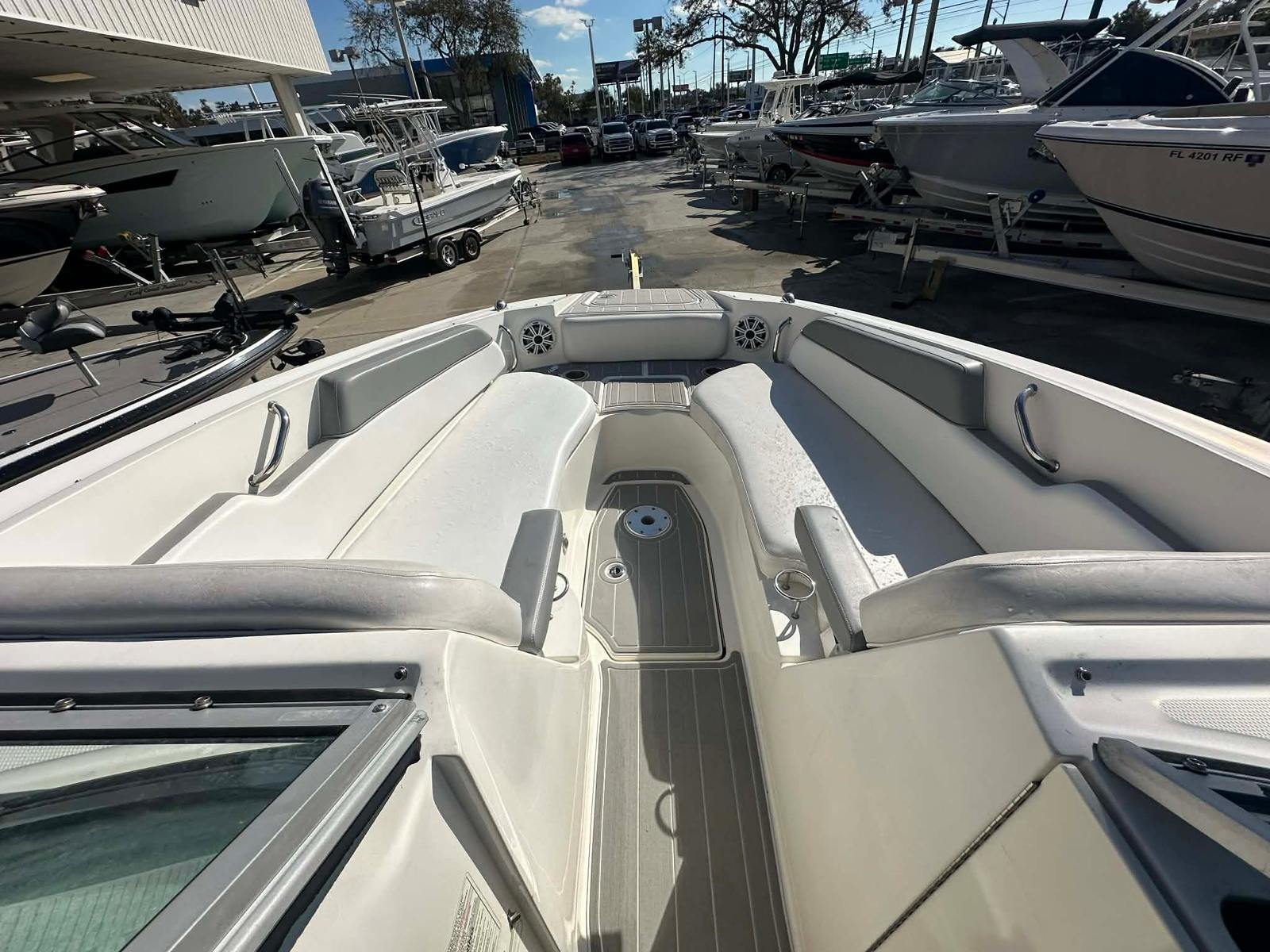 The 2012 Sea Ray Sundeck 300 Bowrider boasts a generous length of 29.5 feet, offering ample space for relaxation and recreation. With its sleek lines and modern design, this used Bowrider boat is sure to turn heads at the marina or on open water. The Sundeck 300’s layout is thoughtfully crafted to maximize comfort and functionality, making it an ideal choice for boaters who value both aesthetics and practicality. Its spacious deck provides plenty of room for guests, while the open Bowrider configuration ensures easy access to the water and unobstructed views.