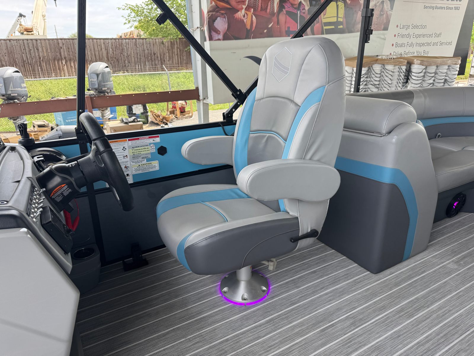 Powered by a single engine with an impressive 150 horsepower, the South Bay S222RS delivers a smooth and responsive ride. Whether you are gliding across calm lakes or exploring winding rivers, this pontoon boat offers reliable performance and easy handling. The 150 HP engine ensures you have the power needed for towing water toys, reaching your favorite fishing spots, or simply cruising at a comfortable pace. With its efficient design, the S222RS provides a balanced combination of speed, stability, and fuel economy, making every outing enjoyable and worry-free.