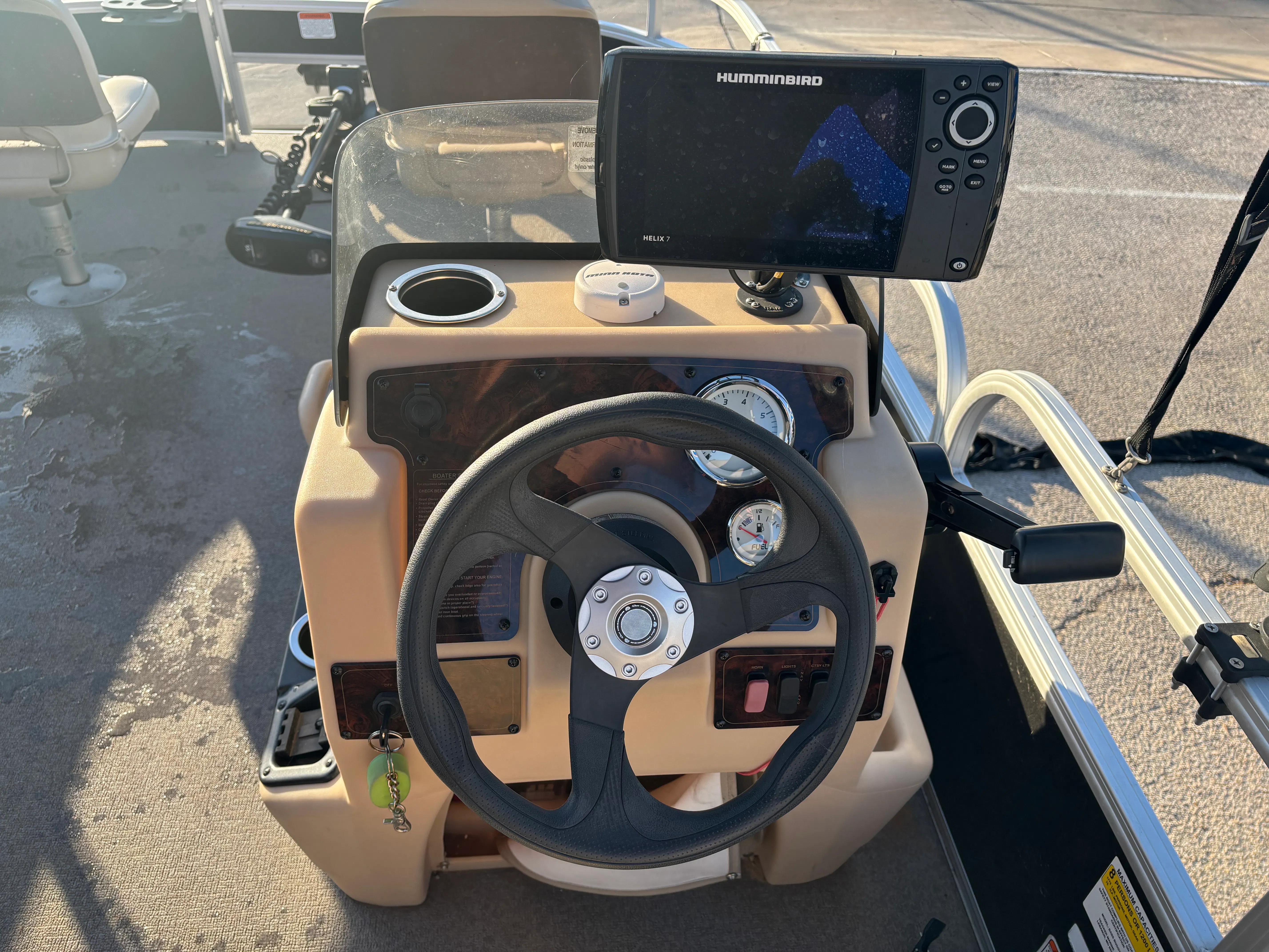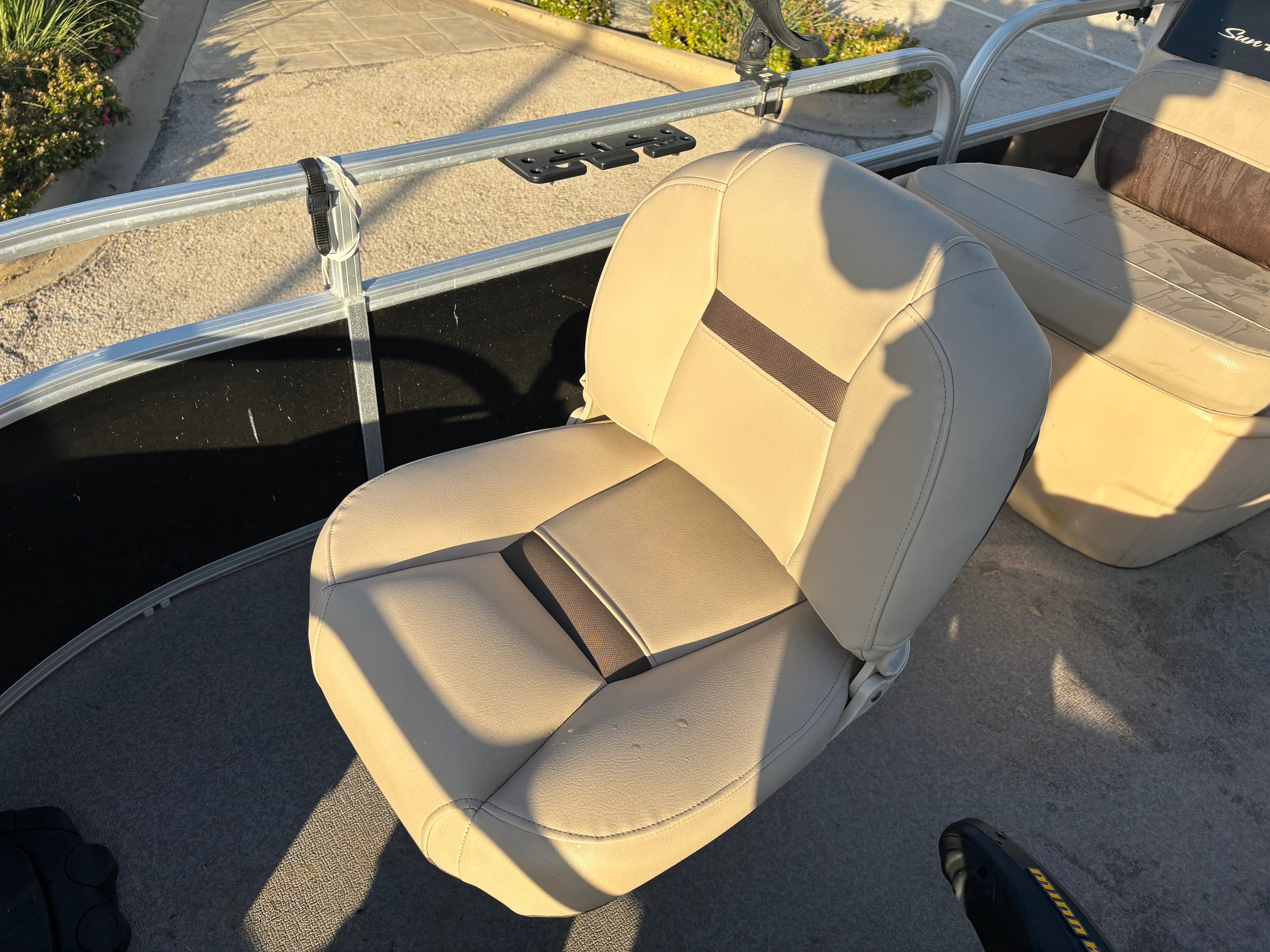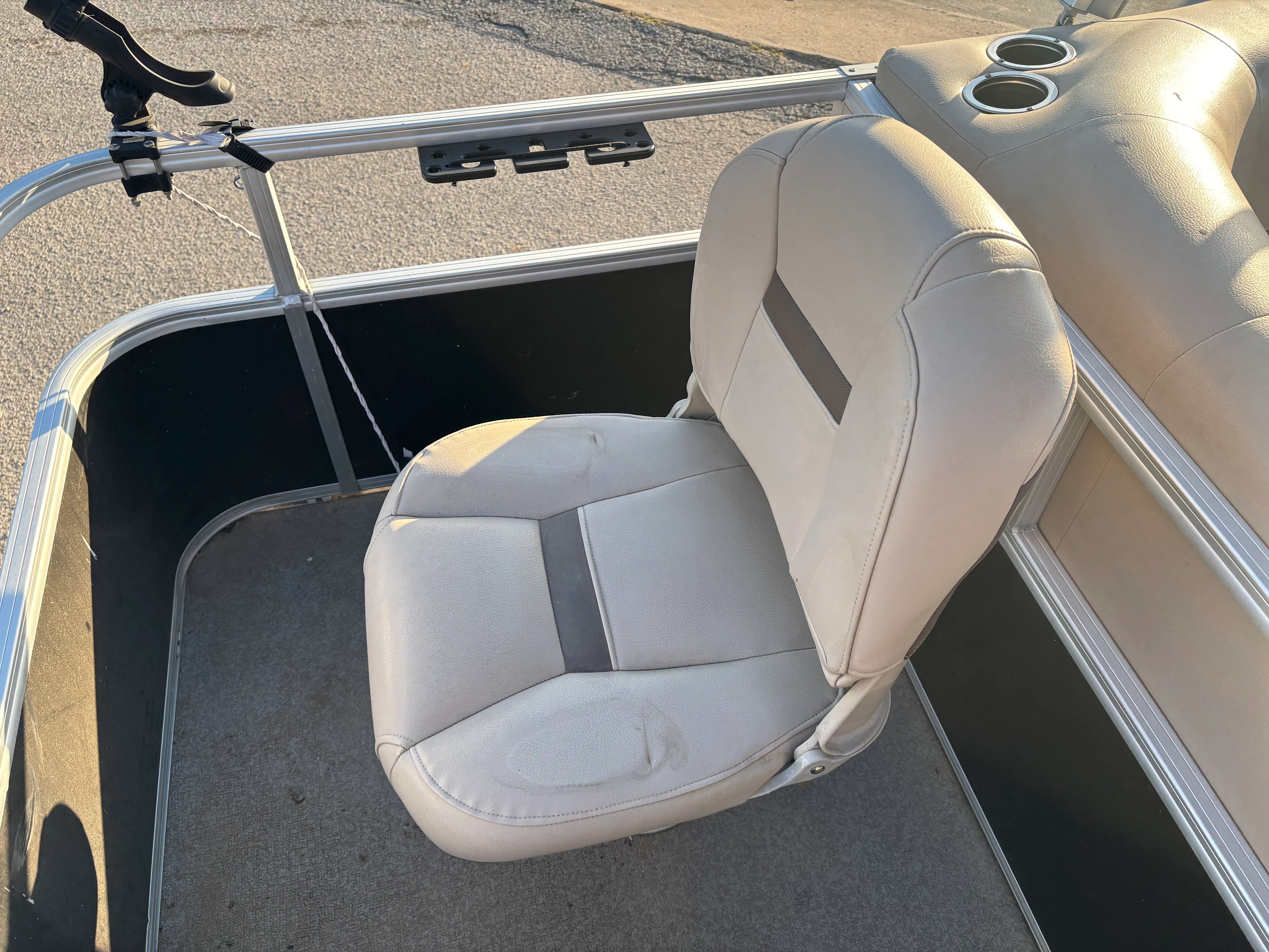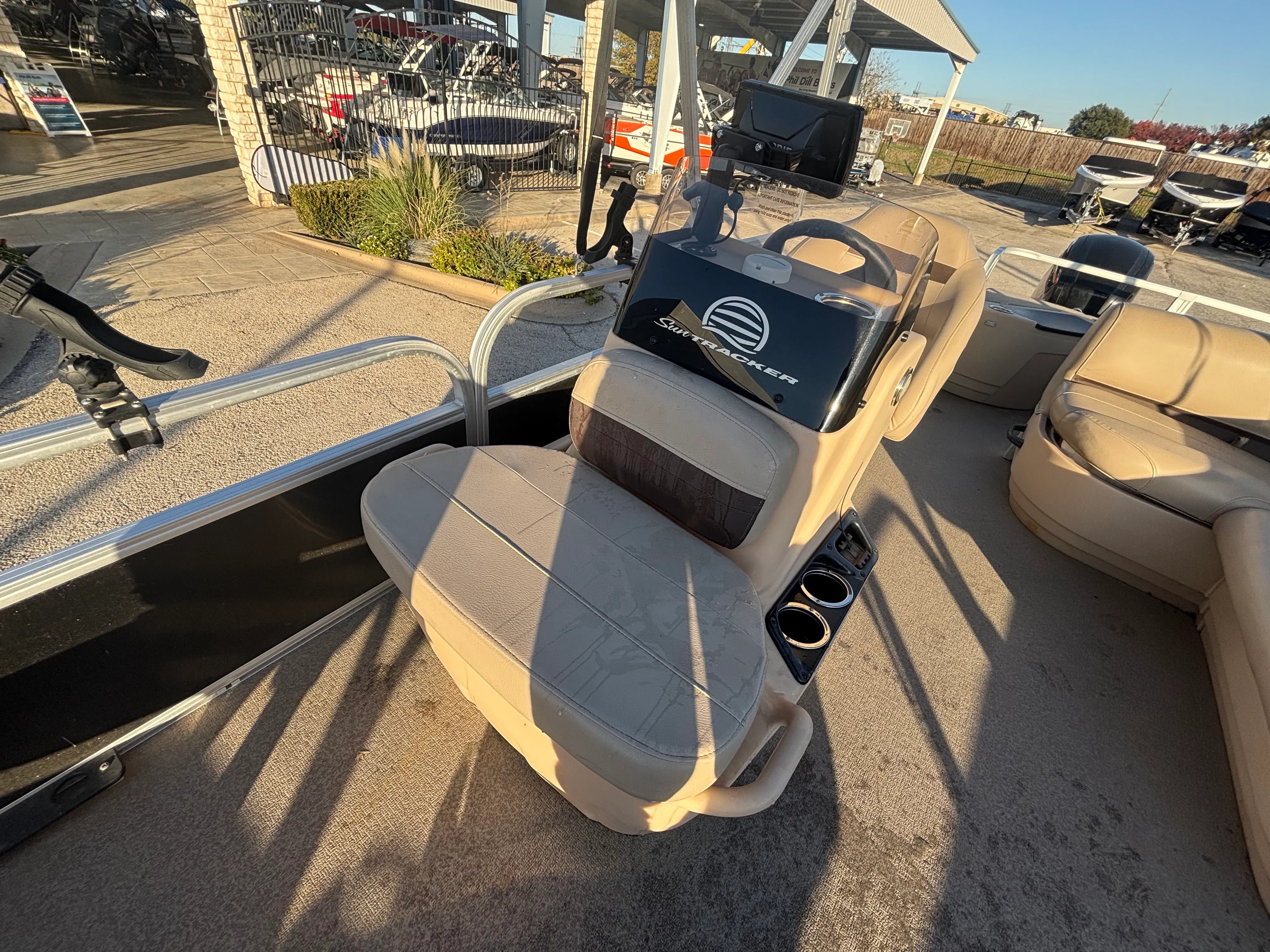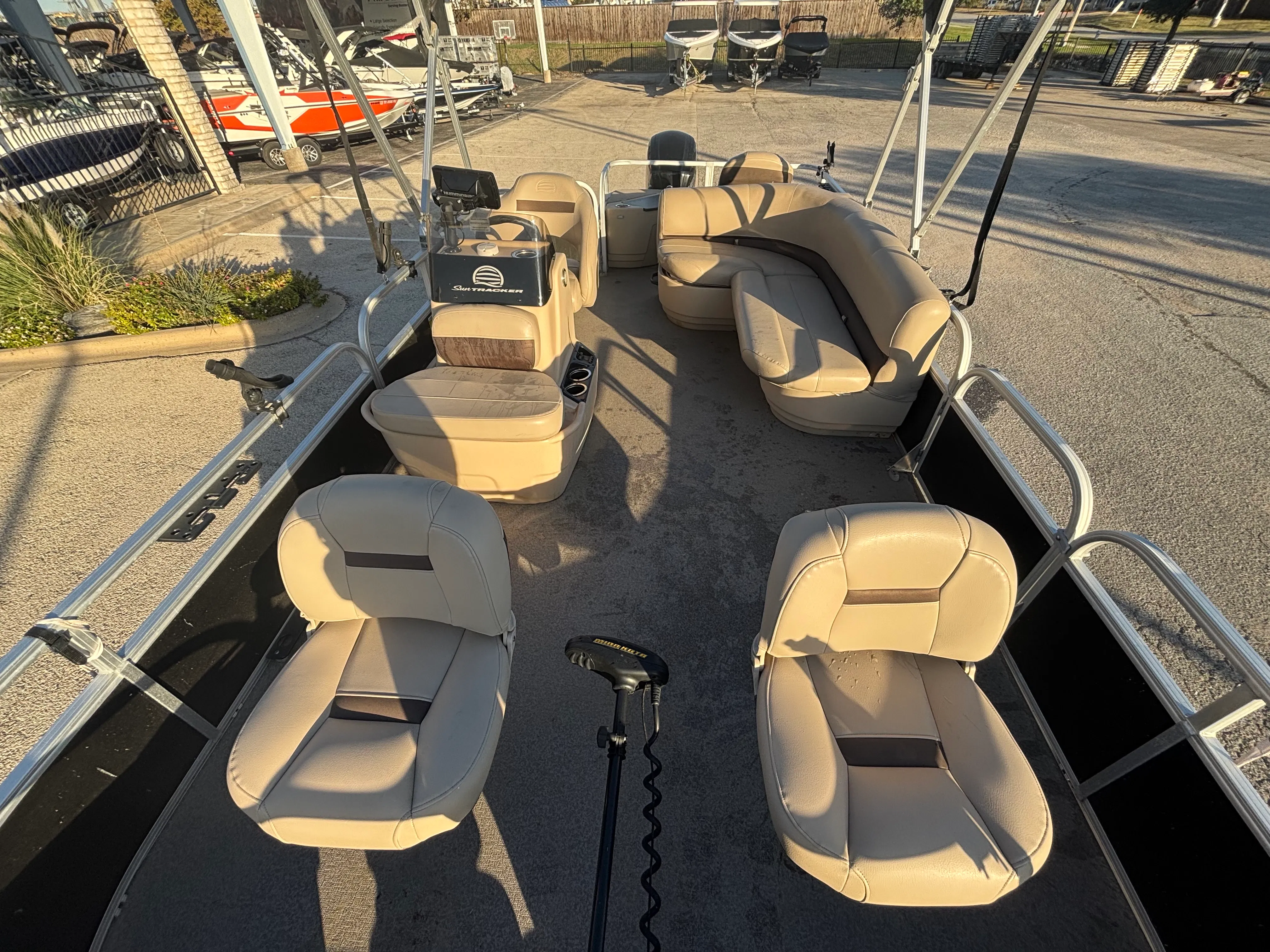 Owning a Sun Tracker Bass Buggy 18 Select opens the door to countless hours of fun and relaxation on the water. The pontoon’s spacious design makes it ideal for social gatherings, family outings, and fishing trips. The comfortable seating and open layout create a welcoming environment for everyone on board, while the sturdy construction ensures a smooth and stable ride. Whether you are casting a line, enjoying a picnic, or simply soaking up the sun, this pontoon boat provides the perfect setting for making memories.The 75-horsepower engine offers a great combination of power and fuel efficiency, allowing you to explore more without worrying about frequent refueling. The boat’s manageable size makes it easy to trailer, launch, and dock, giving you the freedom to visit a variety of waterways with minimal hassle. As a used pontoon boat for sale, the Bass Buggy 18 Select represents an excellent value, offering the features and performance you want at a price that fits your budget.