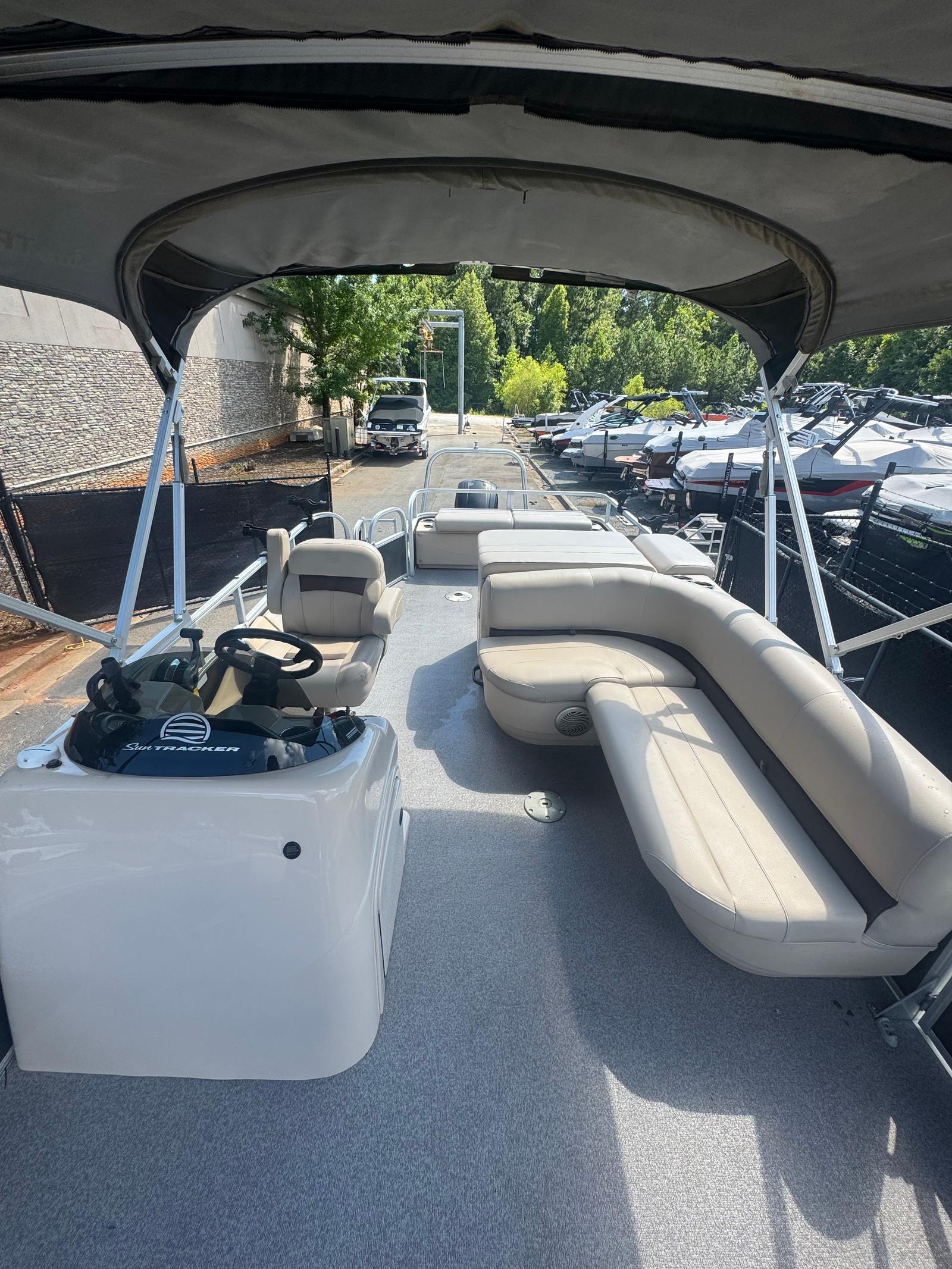Less than 50 hours on this barely broke in Suntracker 22 XP3! Here’s your chance to buy a practically brand new boat at a used boat price. This boat is a one owner locally owned boat that’s never left fresh water. It is a full 3 toon Tritoon powered by a reliable 150 HP Mercury. It has been thoroughly inspected and serviced by factory certified technicians and everything checked out as should.