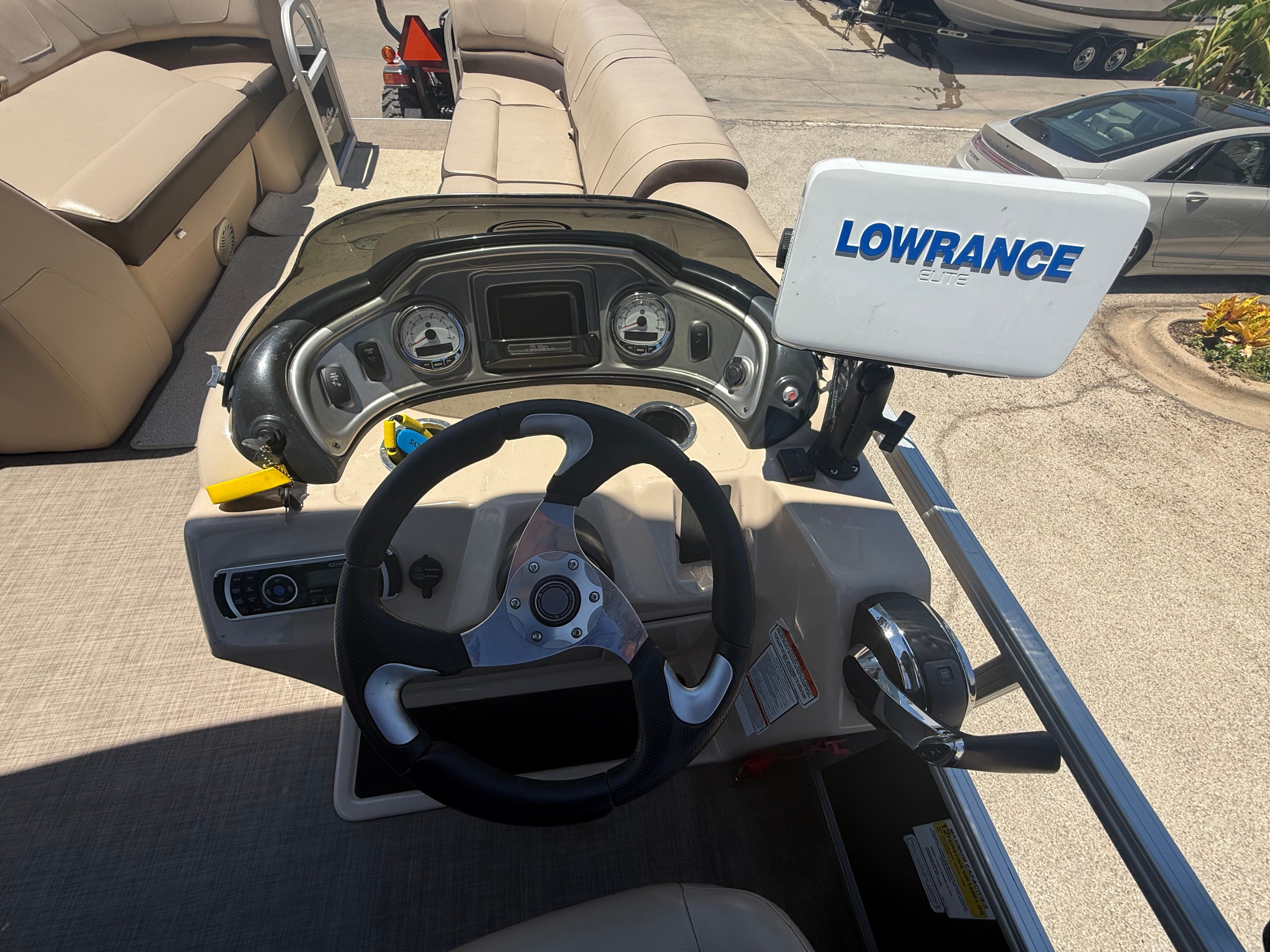 Powering the Tracker Party Barge 24 DLX is a robust single engine delivering an impressive 250 horsepower. This setup provides smooth acceleration, responsive handling, and the ability to cruise effortlessly across lakes, rivers, and calm coastal waters. Whether you are towing water toys, heading to your favorite fishing spot, or simply enjoying a relaxing day on the water, the 250-horsepower engine ensures you have the power and reliability you need. With only 69 hours on the engine, you can feel confident in its performance and longevity, making this Tracker boat for sale a smart investment for years to come.