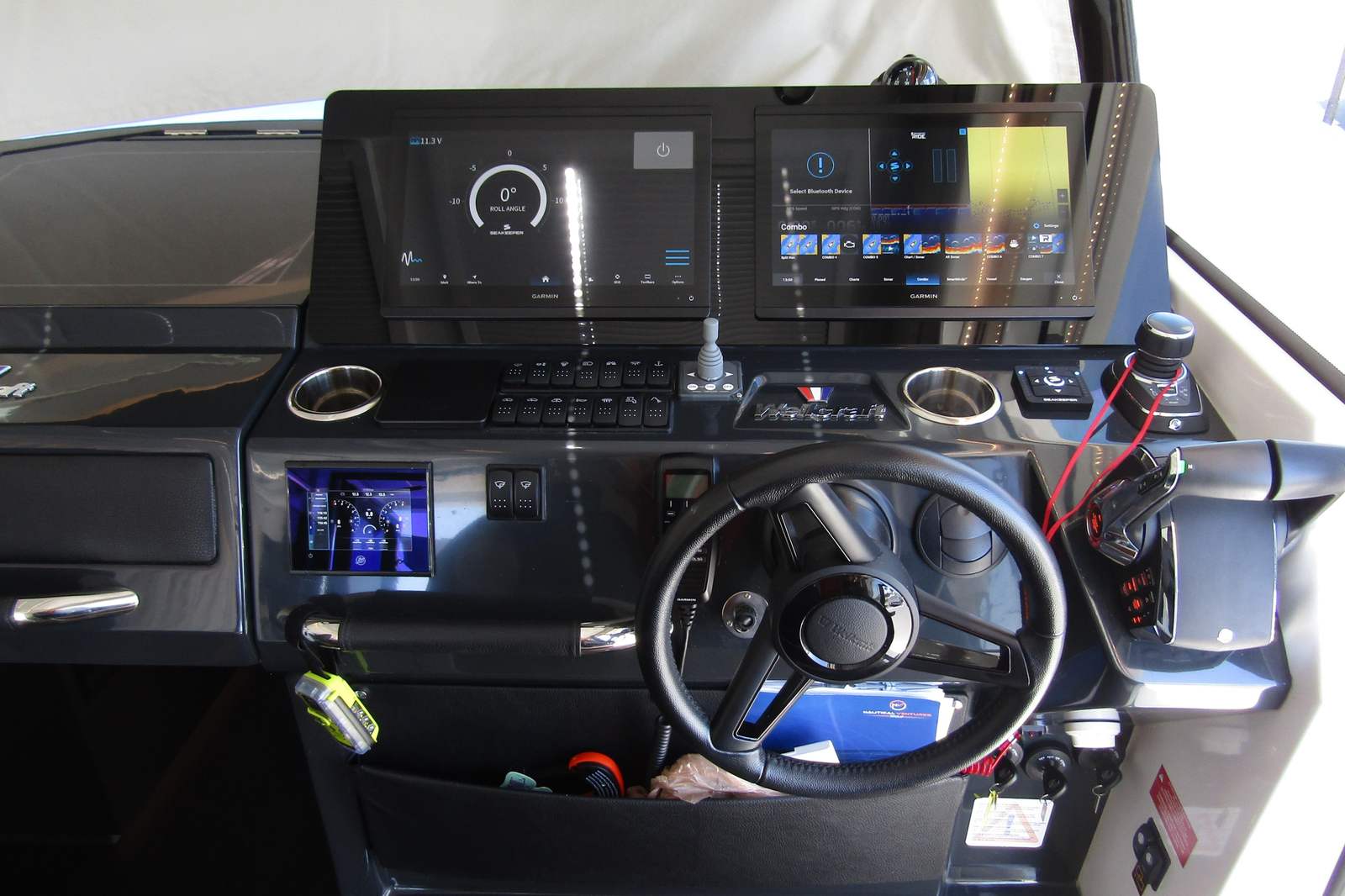 Inside, the spacious cabin is equipped for extended stays with a galley, private head/shower, comfortable berth, and premium finishes throughout. The advanced helm features dual Garmin displays, joystick control, and full digital integration for a seamless boating experience.