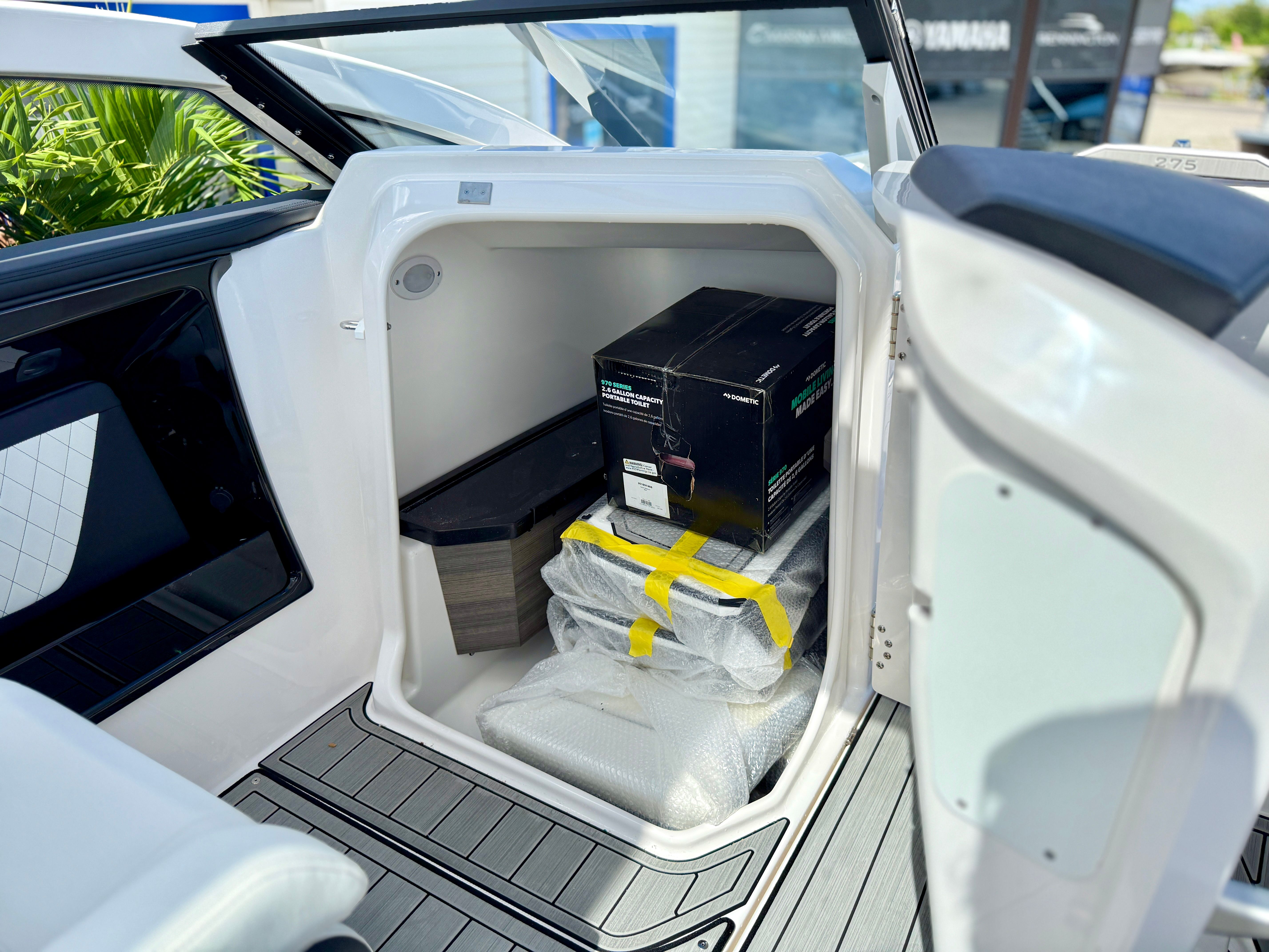 The Yamaha 275 SD is designed with practicality in mind, making ownership easy and enjoyable. Its efficient jet propulsion system reduces the risk of damage from underwater obstacles and simplifies docking, even in tight spaces. The spacious layout provides plenty of room for storing gear, water toys, and personal items, ensuring you’re always prepared for a day on the water. Fuel efficiency is enhanced by Yamaha’s advanced engineering, allowing you to spend more time enjoying the boat and less time refueling. Maintenance is straightforward, thanks to the reliable twin-engine setup and Yamaha’s reputation for durability.