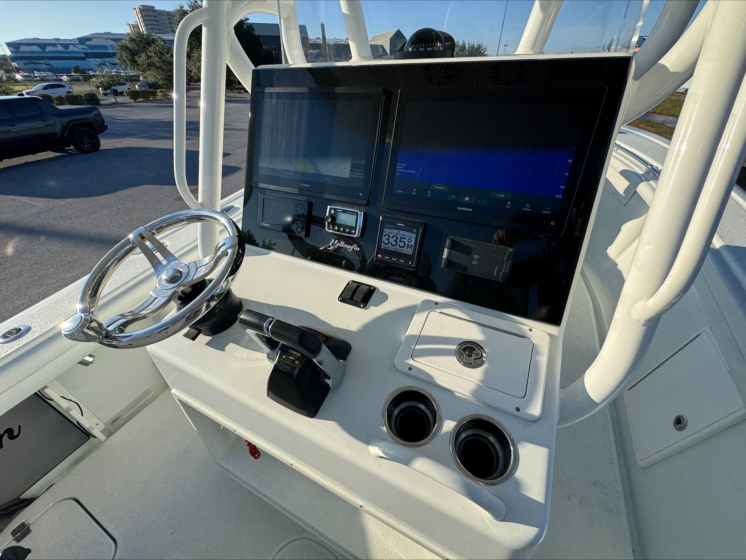 Powering this Yellowfin boat for sale are two high-performance engines, delivering a combined 600 horsepower. This impressive setup ensures that the 29 CC is not only fast but also responsive, providing the agility needed for quick maneuvers and the strength required for offshore adventures. The twin-engine configuration enhances reliability and safety, giving you peace of mind whether you’re navigating coastal waters or heading out into deeper seas. With this level of horsepower, the Yellowfin 29 CC offers exhilarating acceleration and top-end speed, making it an ideal choice for those who value both excitement and control on the water.